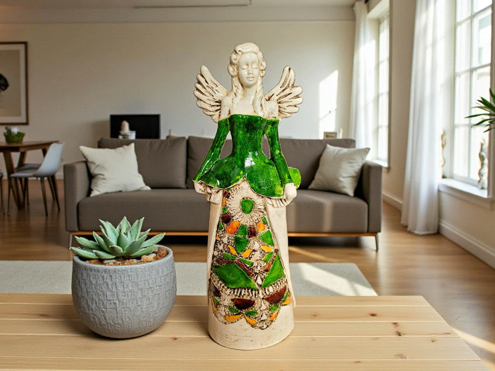 Anioł Anna to ręcznie wykonana figurka z gipsu, która wnosi do wnętrza niepowtarzalny urok i elegancję. Dzięki stabilnej podstawie można go ustawić w dowolnym miejscu – na stole, komodzie czy półce, gdzie stanie się centralnym punktem dekoracji.