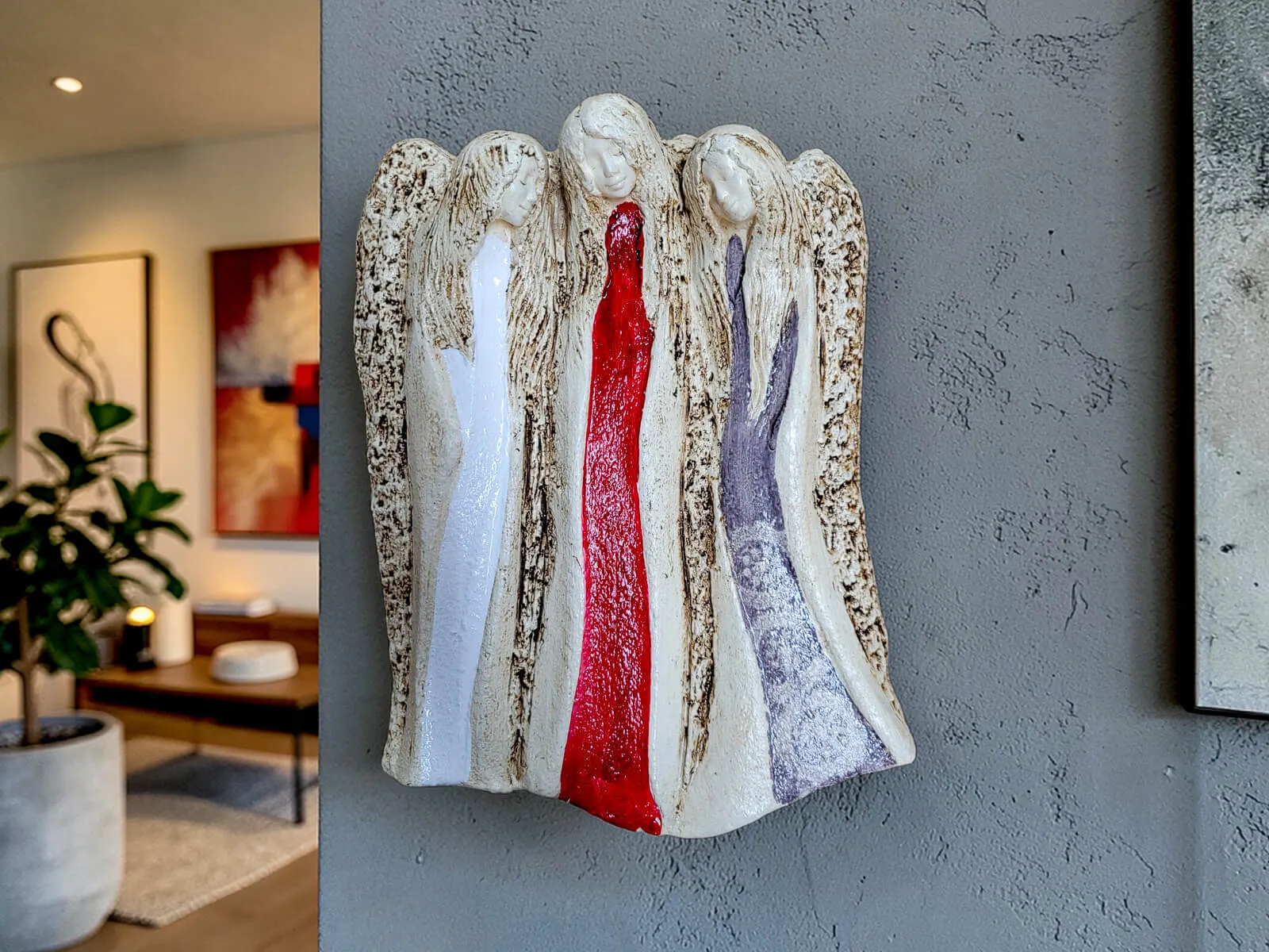 • Figurka aniołów Wiara Nadzieja Miłość - biały bordo szary -  28 x 20 cm figurka dekoracyjna