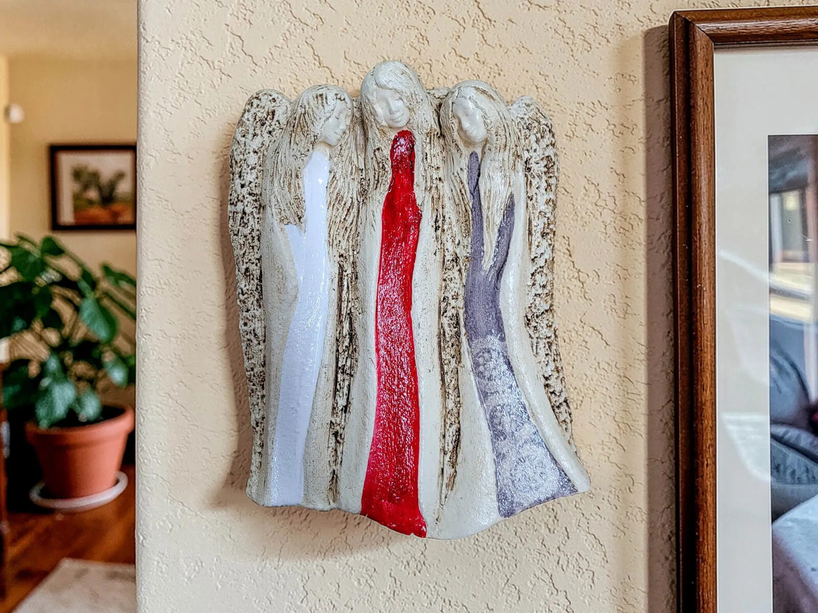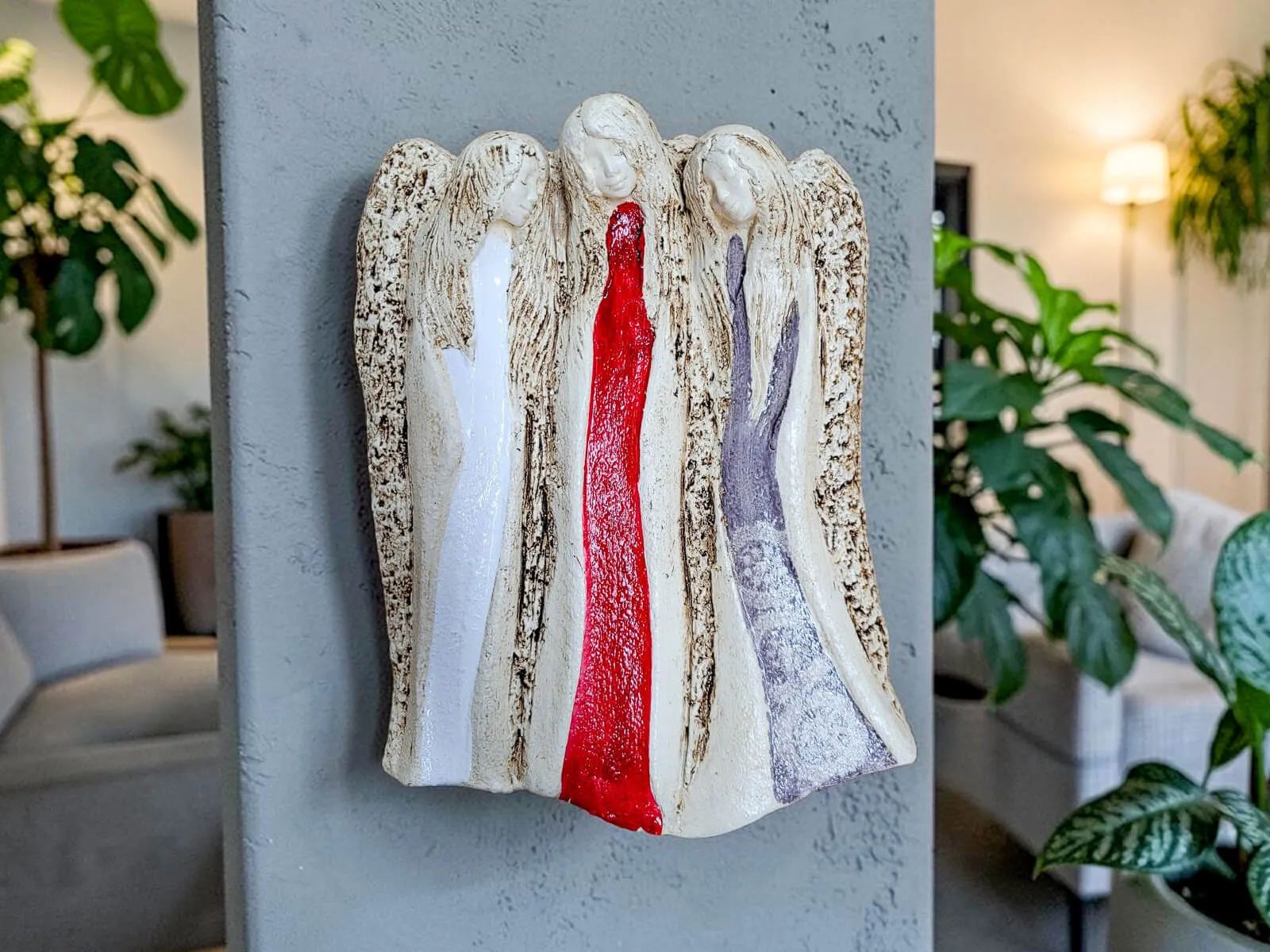 Figurka aniołów Wiara Nadzieja Miłość - biały bordo szary - 28 x 20 cm figurka dekoracyjna +