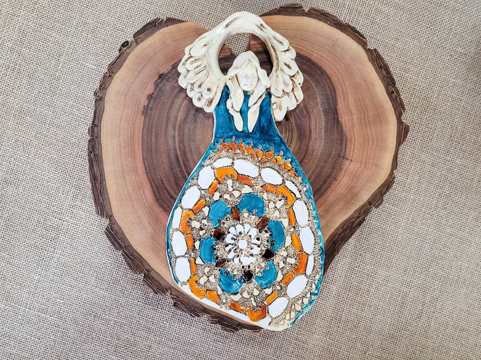 Jeśli anioł ma zostać wręczony jako prezent możemy go również elegancko zapakować w przeźroczysty celofan wiązany ekologicznym sznurkiem. Dzięki temu anioł będzie wyglądał jeszcze bardziej dostojnie i będzie gotowy do wręczenia. Dla wygody możesz również od razu zakupić papierową białą torbę prezentową.