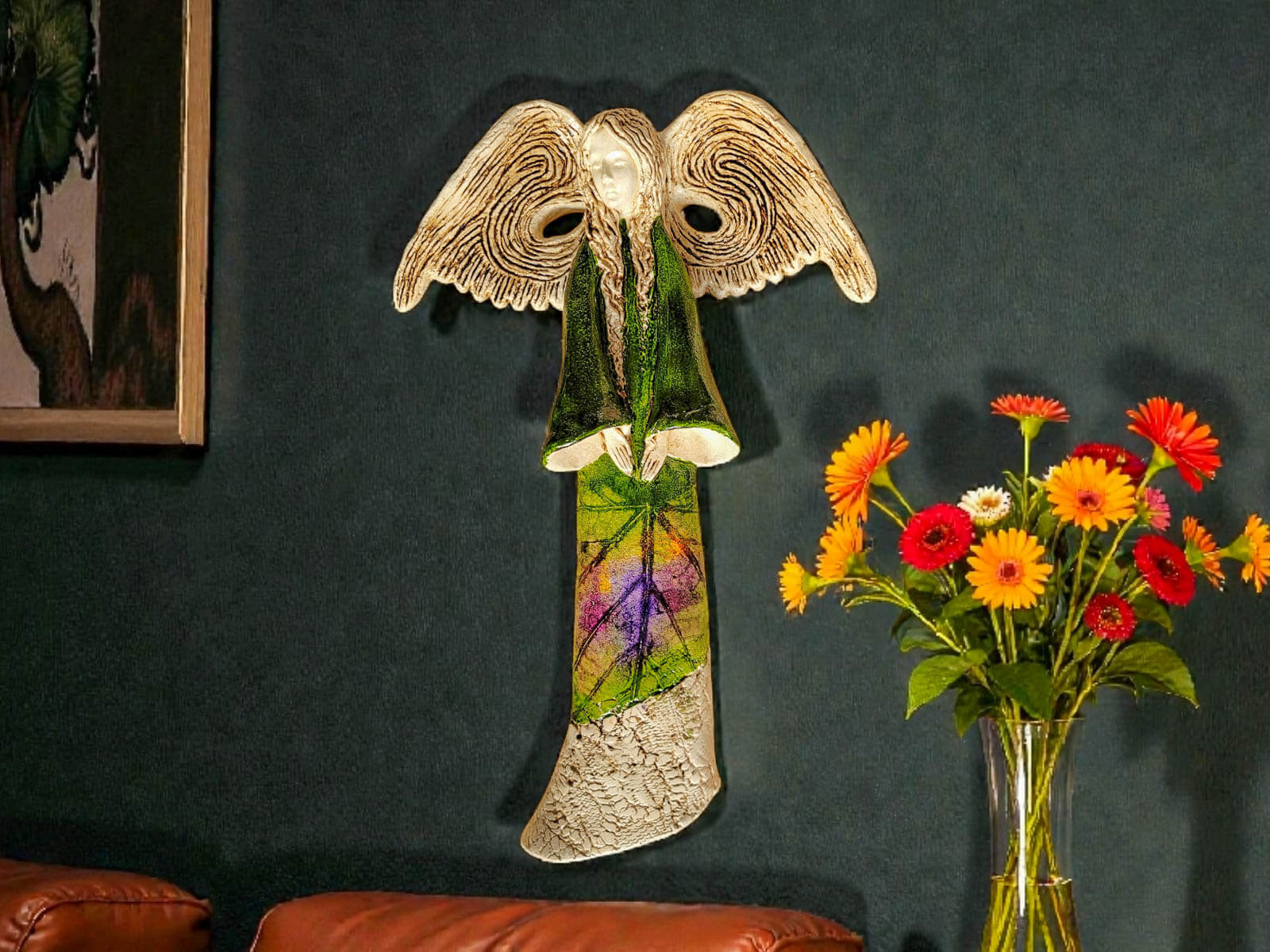 Jej zielona suknia zdobiona prawdziwymi liśćmi zachwyca naturalnością i elegancją, a rozłożyste, imponujące skrzydła nadają figurze lekkość i wznoszącą energię. Clara to doskonały akcent dekoracyjny do salonu, sypialni, korytarza czy gabinetu, wprowadzający do wnętrza spokój, harmonię i piękno natury.