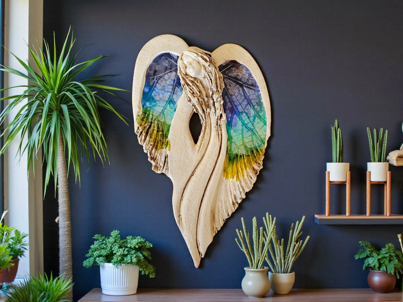 Unikalny anioł Cynthia z kolekcji Art. Jedyna sztuka z tym wzorem. Wyjątkowa uroda, ujmująca delikatność, wielka wrażliwość, kwintesencja kobiecości, pełna miłości, porywająca, a jednocześnie zapewniająca spokój. Zobacz jak pięknie chroni miłość, jak dba i troszczy się o Ciebie i Twoich bliskich, opiekuje, obdarza wiarą dającą siłę, rozlewa radość do każdego zakątka mieszkania, przepełnia je dobrocią, sercem pełnym nadziei, sprawia, że miłość dwojga ludzi jest spokojną przystanią.