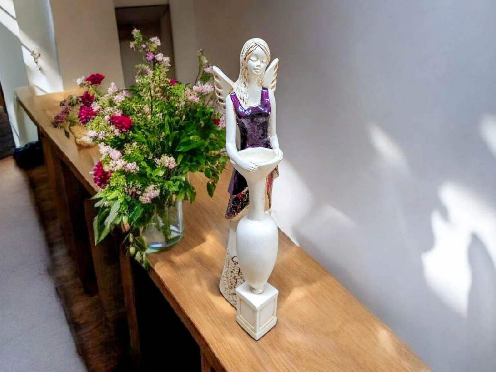 Jeśli anioł ma zostać wręczony jako prezent możemy go również elegancko zapakować w przeźroczysty celofan wiązany ekologicznym sznurkiem. Dzięki temu anioł będzie wyglądał jeszcze bardziej dostojnie i będzie gotowy do wręczenia. Dla wygody możesz również od razu zakupić papierową białą torbę prezentową.