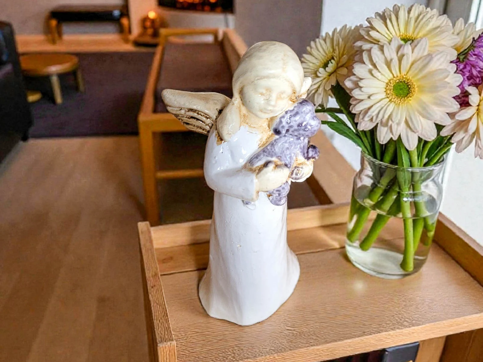 Urocza, ręcznie robiona figurka przedstawiająca małego aniołka – dziewczynkę trzymającą w ramionach pieska. Każdy egzemplarz wykonany jest z dbałością o szczegóły, a każda figurka jest niepowtarzalna.