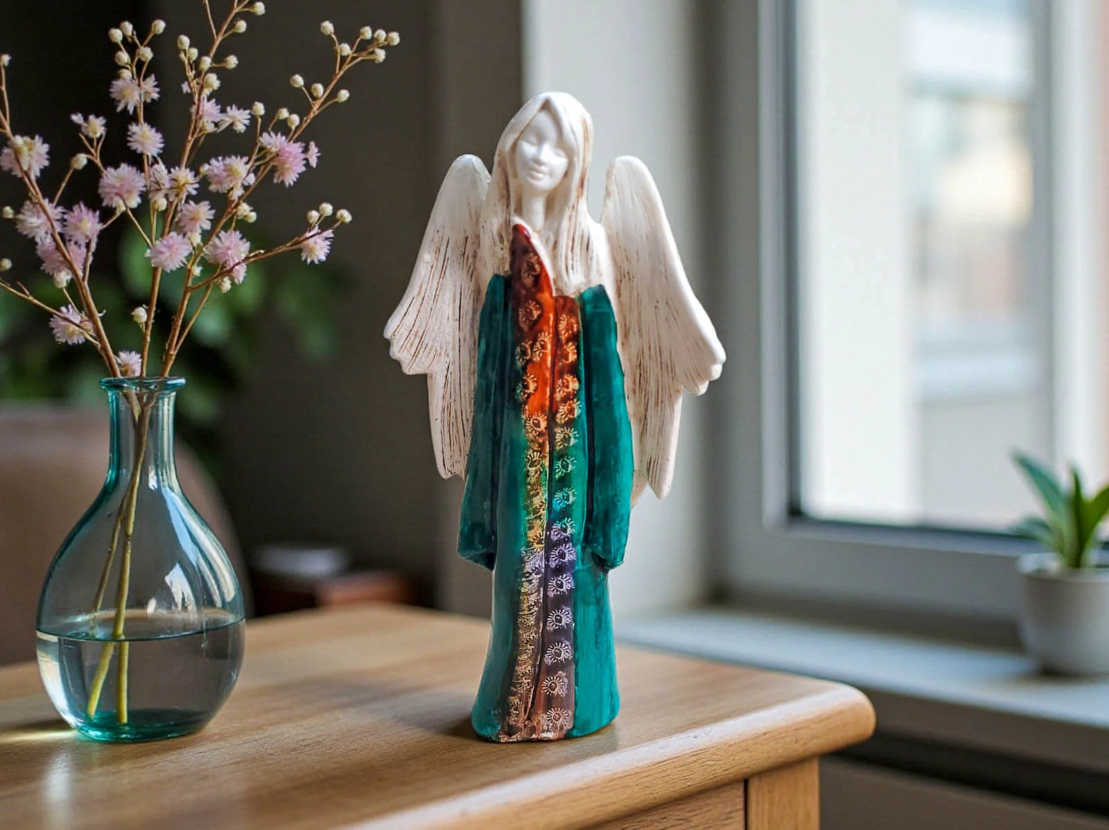 Figurka Anioła Julia w fioletowej sukni ze zdobieniami doskonale wpisuje się w kolekcję Art, dodając nie tylko estetyki, ale także głęboką symbolikę i pozytywną energię do przestrzeni, w której się znajduje. To idealny upominek na urodziny, podziękowanie czy prezent pod choinkę, który wniesie do domu niepowtarzalny klimat sztuki i piękna.