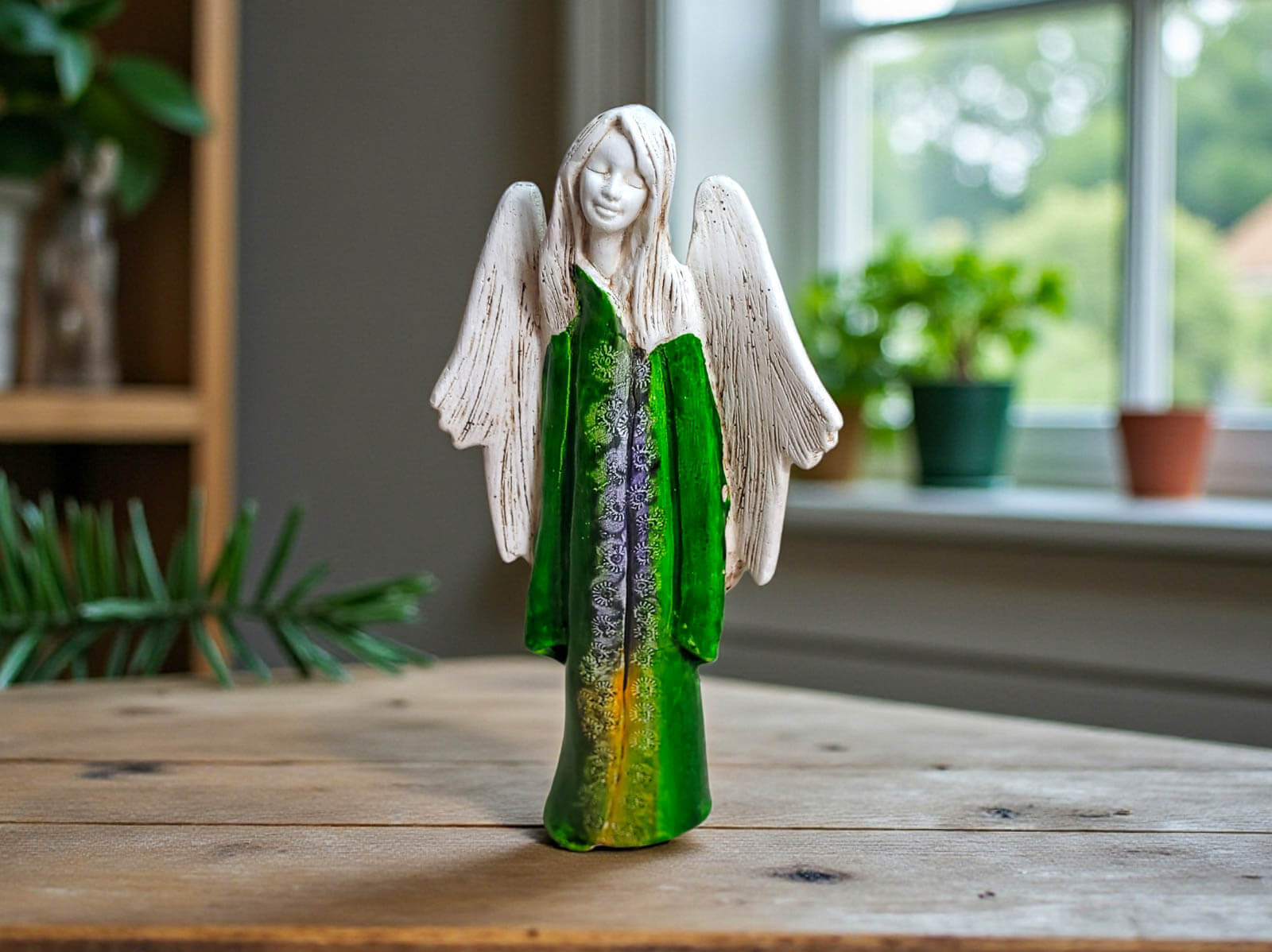 • Figurka anioła Julia Art - zielona -  27 x 14 cm figurka dekoracyjna