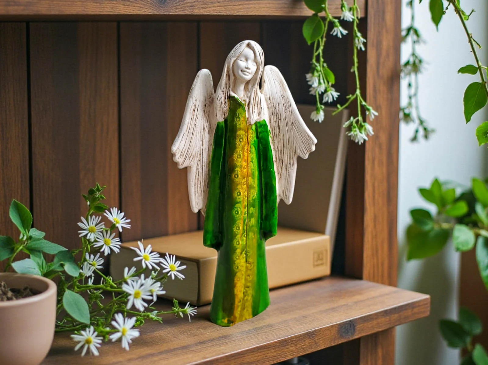 Jeśli anioł ma zostać wręczony jako prezent możemy go również elegancko zapakować w przeźroczysty celofan wiązany ekologicznym sznurkiem. Dzięki temu anioł będzie wyglądał jeszcze bardziej dostojnie i będzie gotowy do wręczenia. Dla wygody możesz również od razu zakupić papierową białą torbę prezentową.