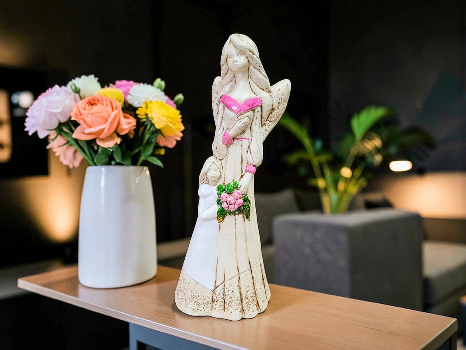 „Niech ta figurka przypomina Ci, że masz przy sobie anioła – zawsze, gdy się śmiejesz, gdy się boisz i gdy się modlisz.”