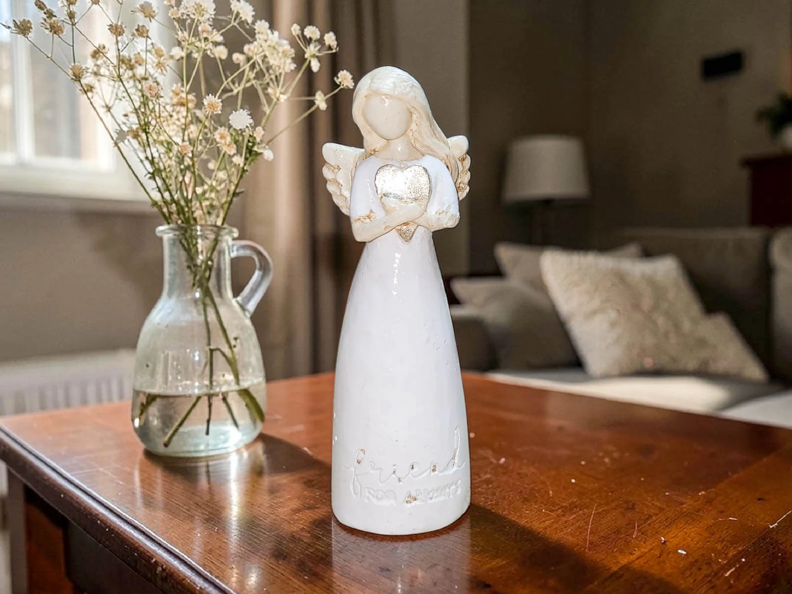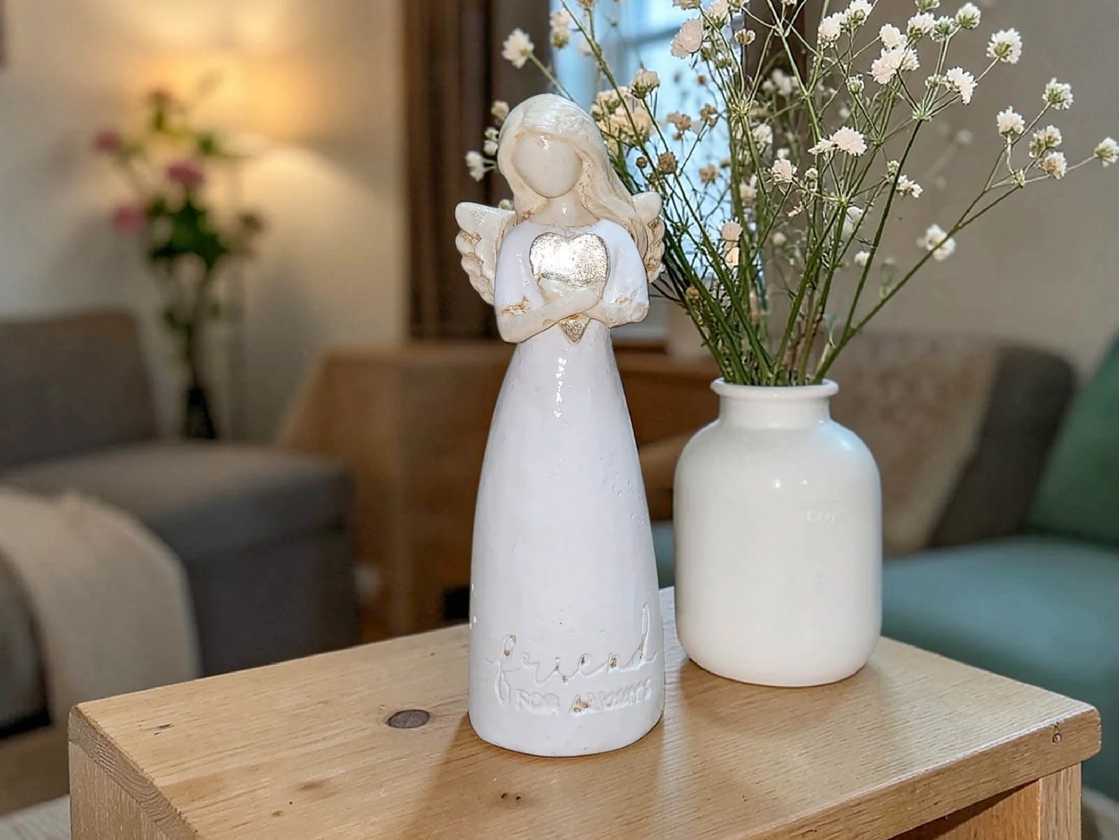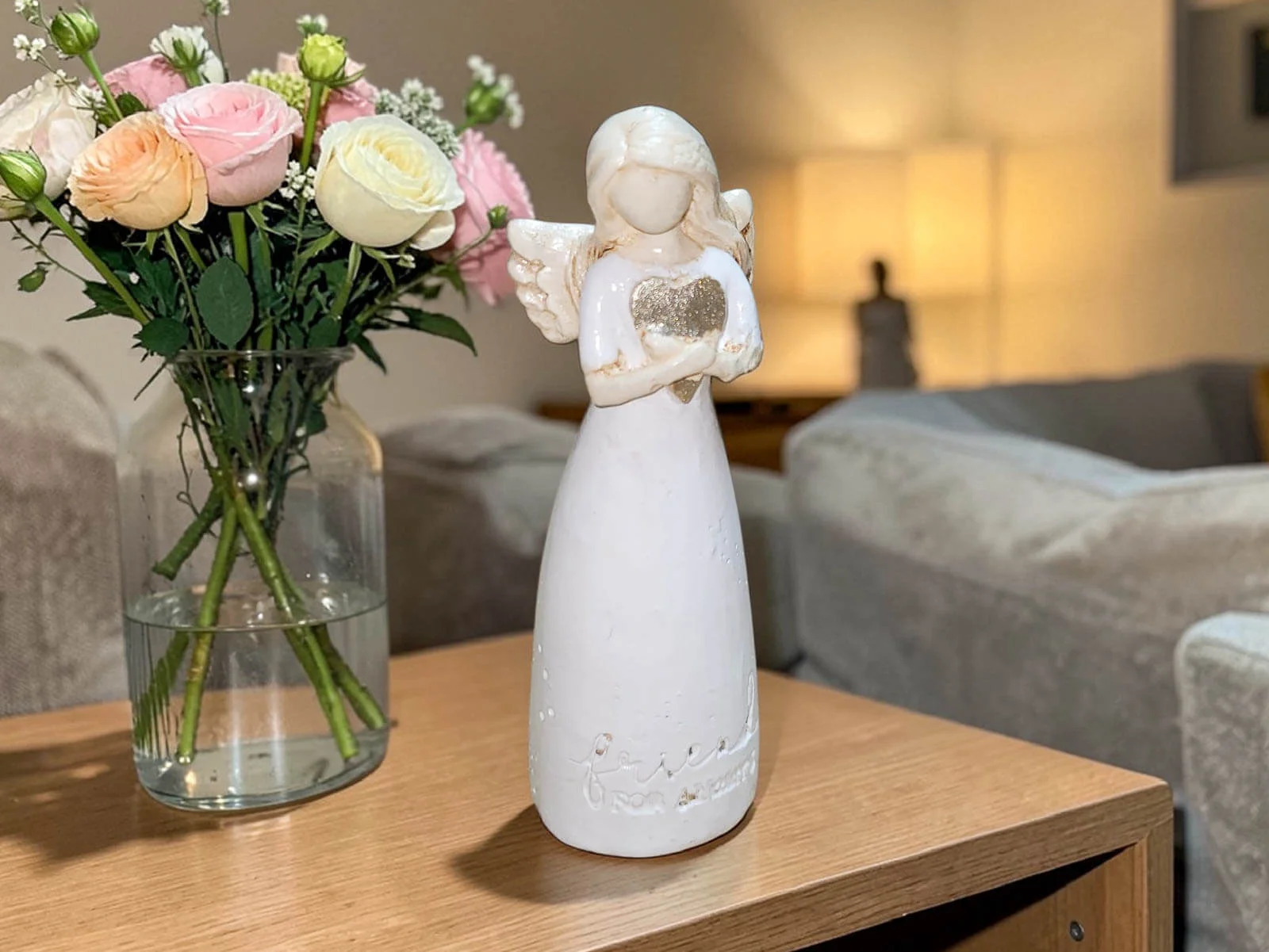 Jeśli anioł ma zostać wręczony jako prezent możemy go również elegancko zapakować w przeźroczysty celofan wiązany ekologicznym sznurkiem. Dzięki temu anioł będzie wyglądał jeszcze bardziej dostojnie i będzie gotowy do wręczenia. Dla wygody możesz również od razu zakupić papierową białą torbę prezentową.
