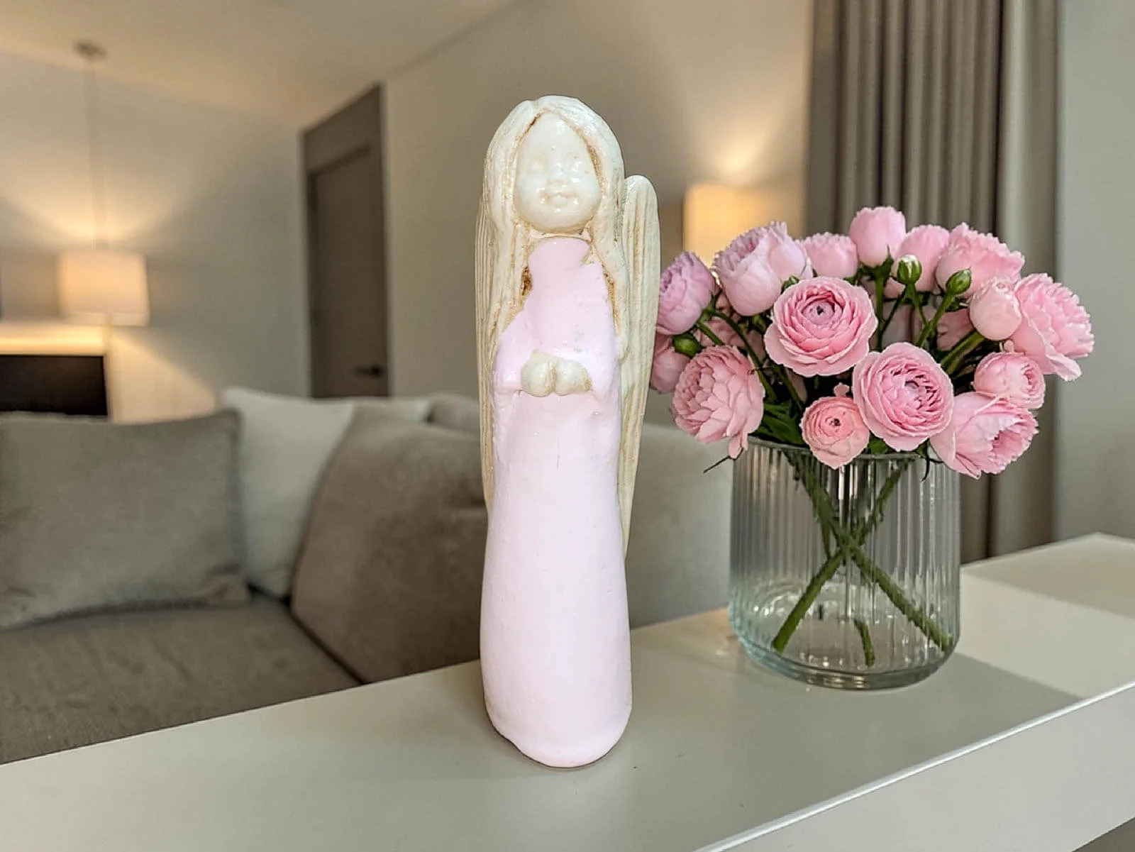 Figurka Słodziak w delikatnej różowej sukni emanuje subtelnością i elegancją. Ta ręcznie robiona ozdoba to wyjątkowy prezent, idealny na różne okazje, dodając wyjątkowy urok każdej chwili. Słodziak prezentuje się w uroczej sukni w odcieniu różu, który symbolizuje spokój, świeżość i delikatność. Kolor ten nadaje figurce wyjątkowego charakteru, czyniąc ją doskonałym dodatkiem do wnętrz utrzymanych w subtelnych tonacjach.