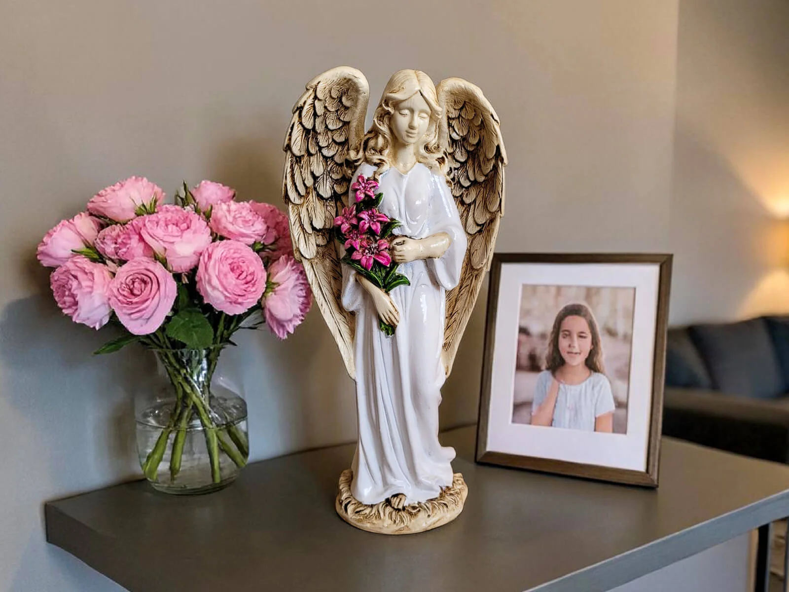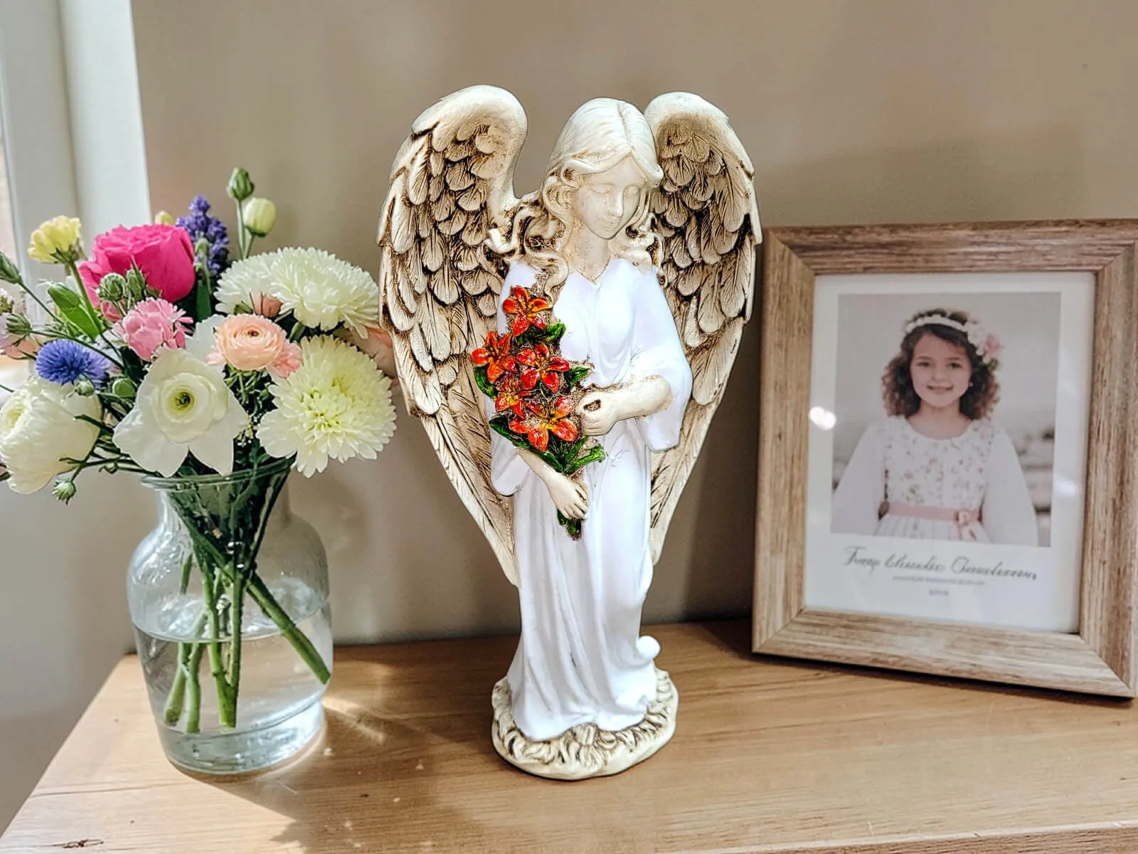 „Niech ta figurka przypomina Ci, że masz przy sobie anioła – zawsze, gdy się śmiejesz, gdy się boisz i gdy się modlisz.”