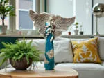 Turkus symbolizuje harmonię, nadzieję i odnowę, dlatego obecność tego anioła tworzy w przestrzeni przyjazną, kojącą atmosferę. Pięknie prezentuje się zarówno w salonie, sypialni, jak i w ogrodzie, stając się eleganckim akcentem dekoracyjnym, który przyciąga spojrzenia i wywołuje pozytywne emocje.
