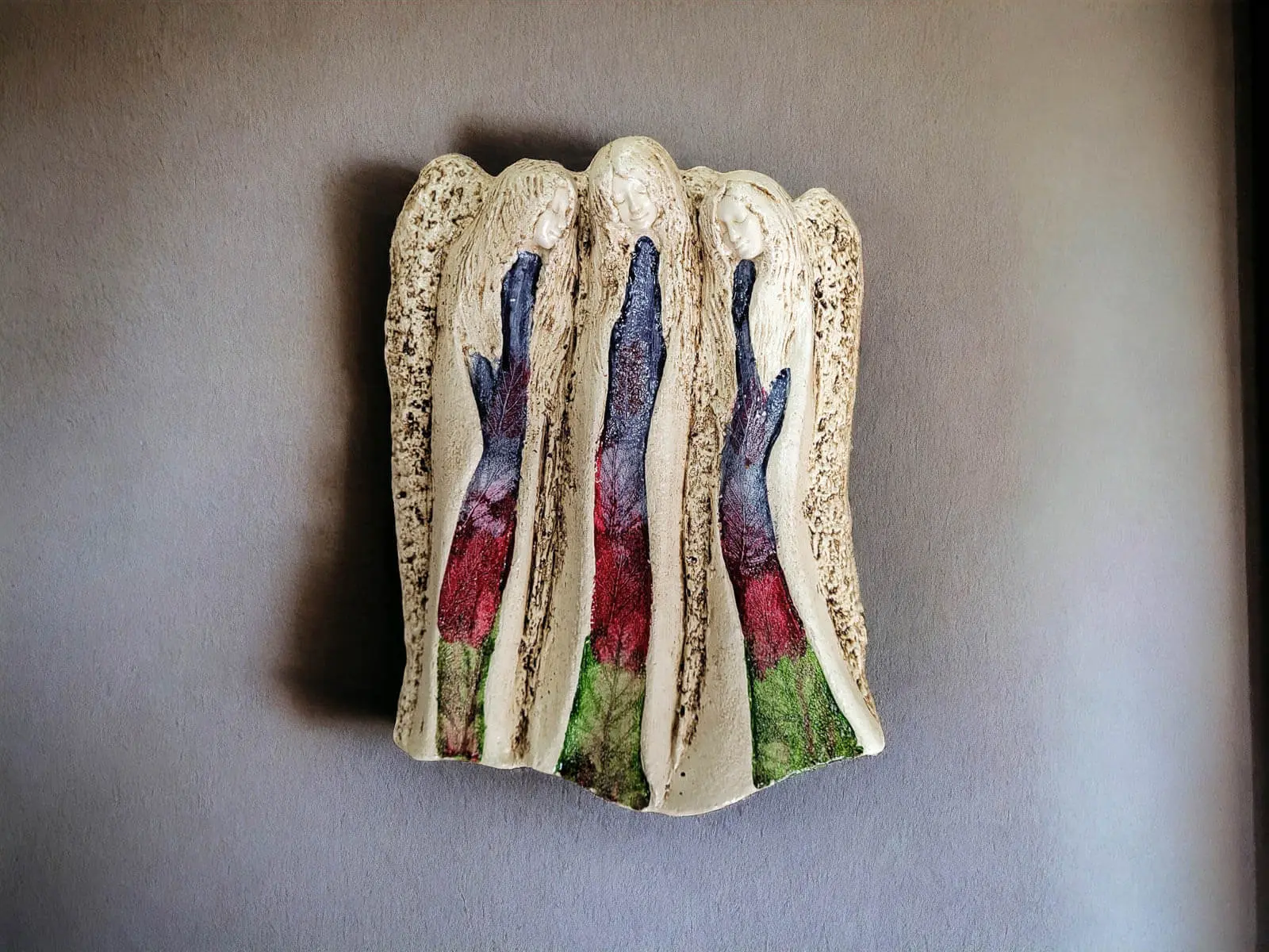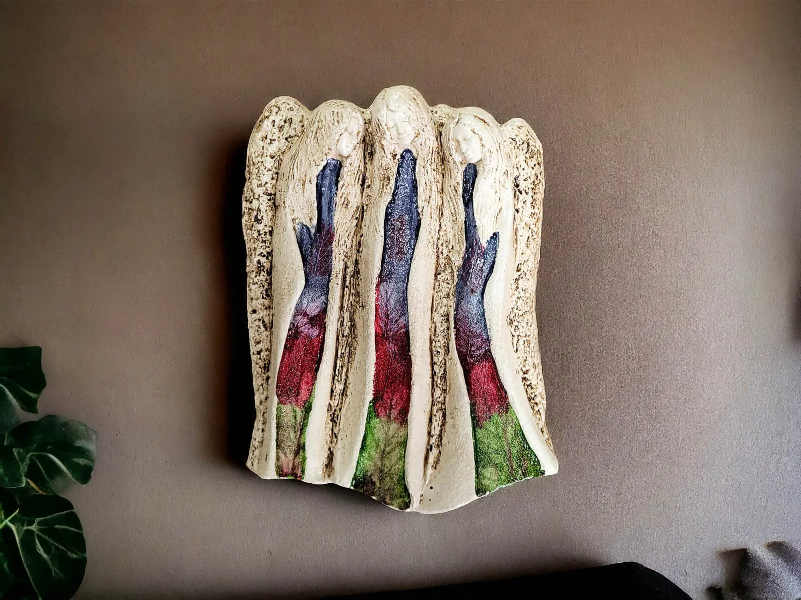 Figurka aniołów Wiara Nadzieja Miłość - zielono brązowe - 28 x 20 cm figurka dekoracyjna