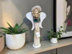Jeśli anioł ma zostać wręczony jako prezent możemy go również elegancko zapakować w przeźroczysty celofan wiązany ekologicznym sznurkiem. Dzięki temu anioł będzie wyglądał jeszcze bardziej dostojnie i będzie gotowy do wręczenia. Dla wygody możesz również od razu zakupić papierową białą torbę prezentową.