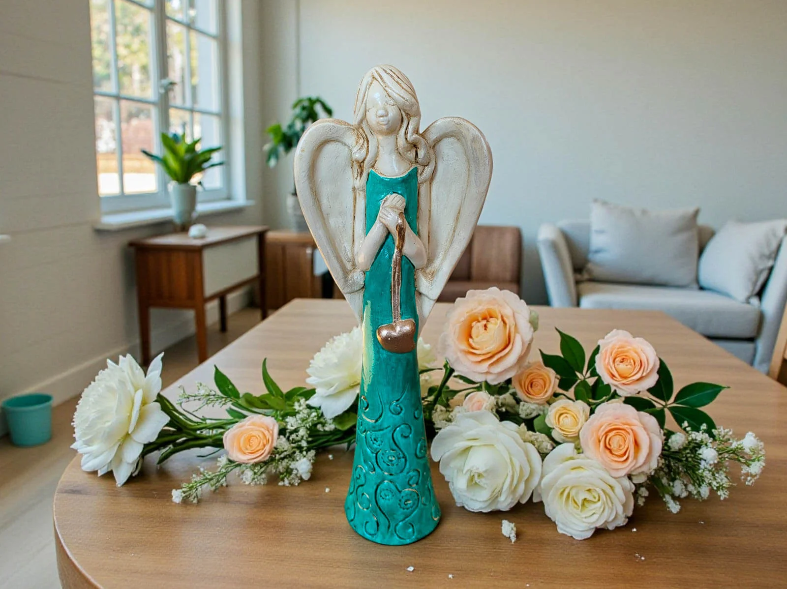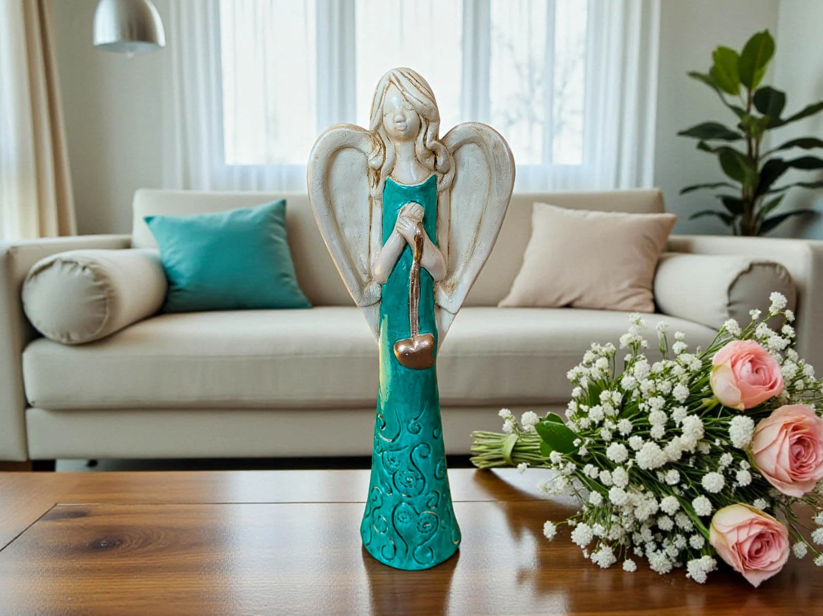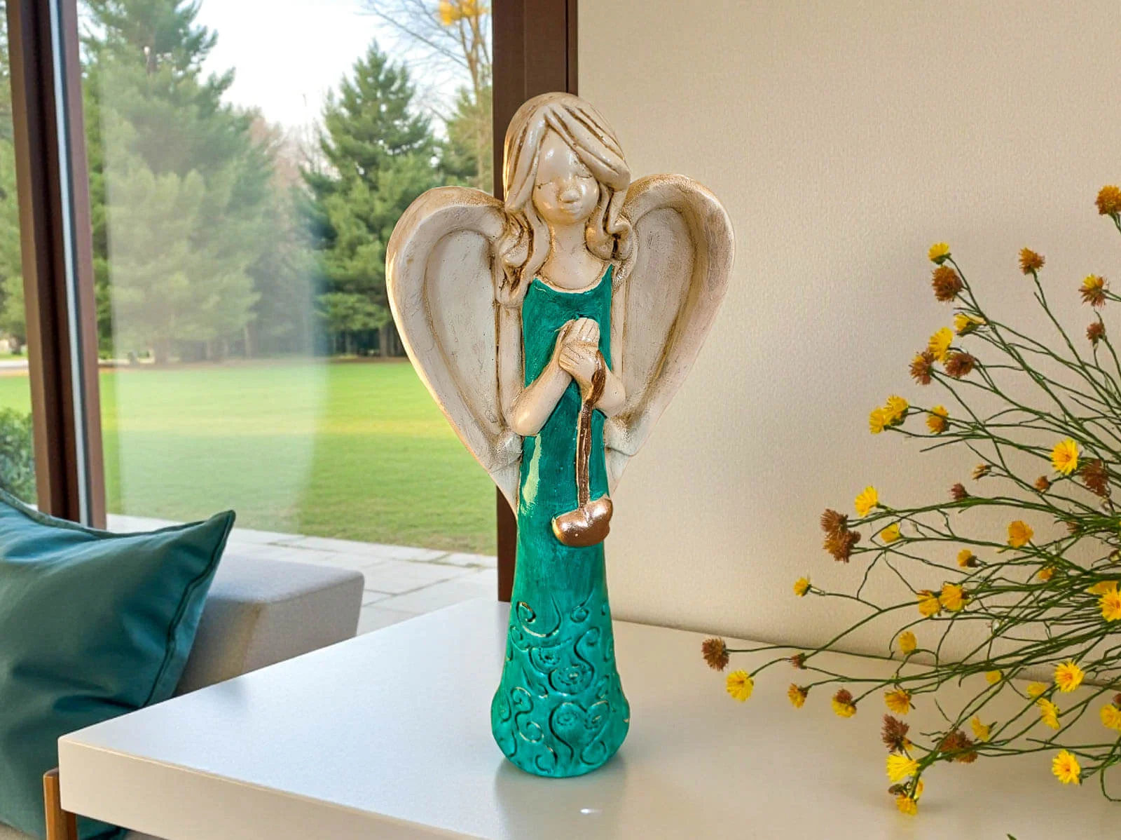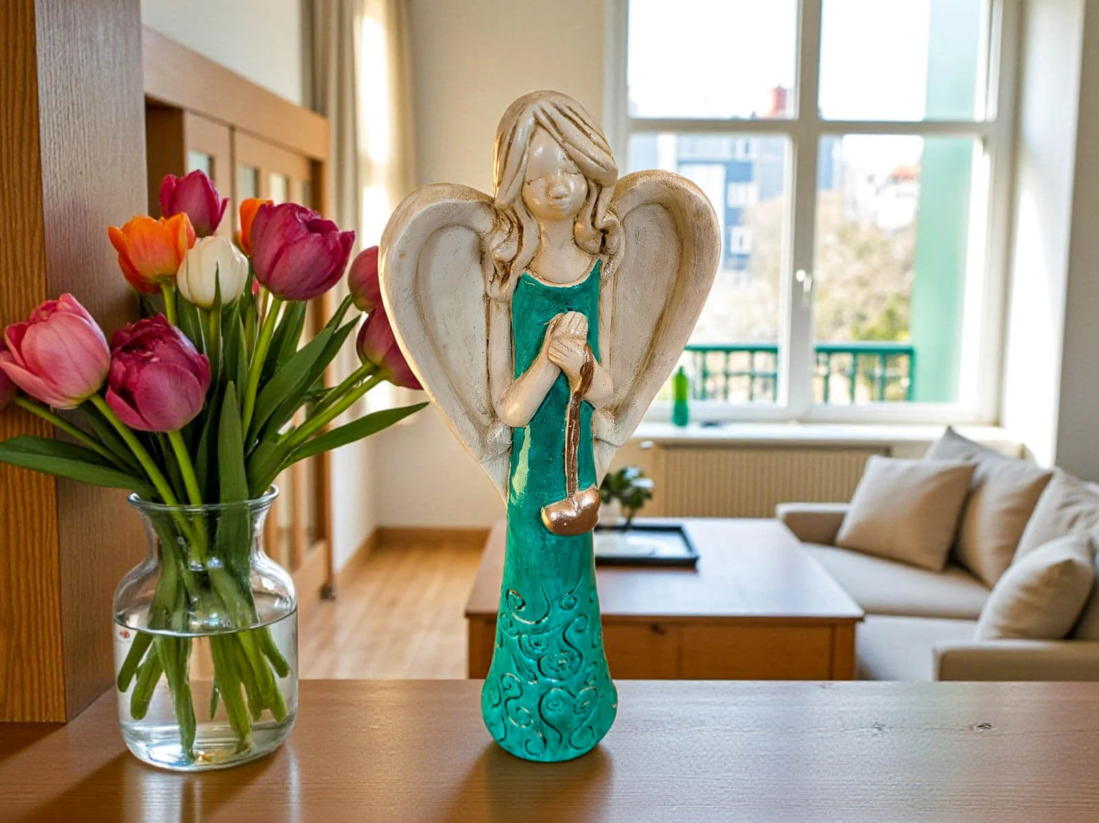Jeśli anioł ma zostać wręczony jako prezent możemy go również elegancko zapakować w przeźroczysty celofan wiązany ekologicznym sznurkiem. Dzięki temu anioł będzie wyglądał jeszcze bardziej dostojnie i będzie gotowy do wręczenia. Dla wygody możesz również od razu zakupić papierową białą torbę prezentową.