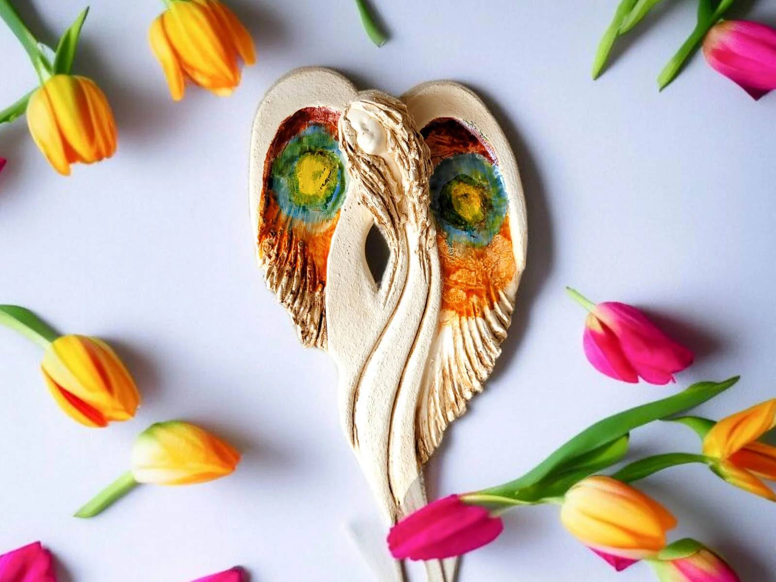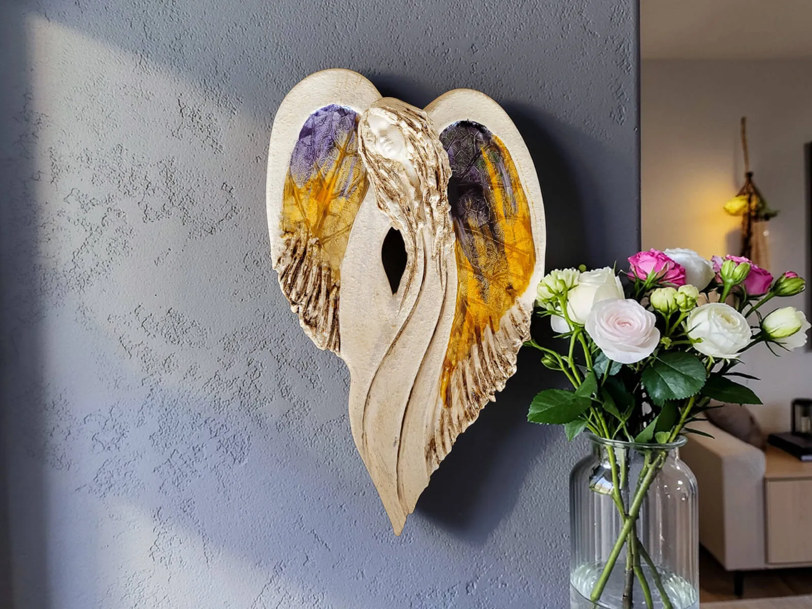 Unikalny anioł Cynthia z kolekcji Art Leaf z wzorami prawdziwych liści. Jedyna sztuka z tym wzorem. Wyjątkowa uroda, ujmująca delikatność, wielka wrażliwość, kwintesencja kobiecości, pełna miłości, porywająca, a jednocześnie zapewniająca spokój. Zobacz jak pięknie chroni miłość, jak dba i troszczy się o Ciebie i Twoich bliskich, opiekuje, obdarza wiarą dającą siłę, rozlewa radość do każdego zakątka mieszkania, przepełnia je dobrocią, sercem pełnym nadziei, sprawia, że miłość dwojga ludzi jest spokojną przystanią.