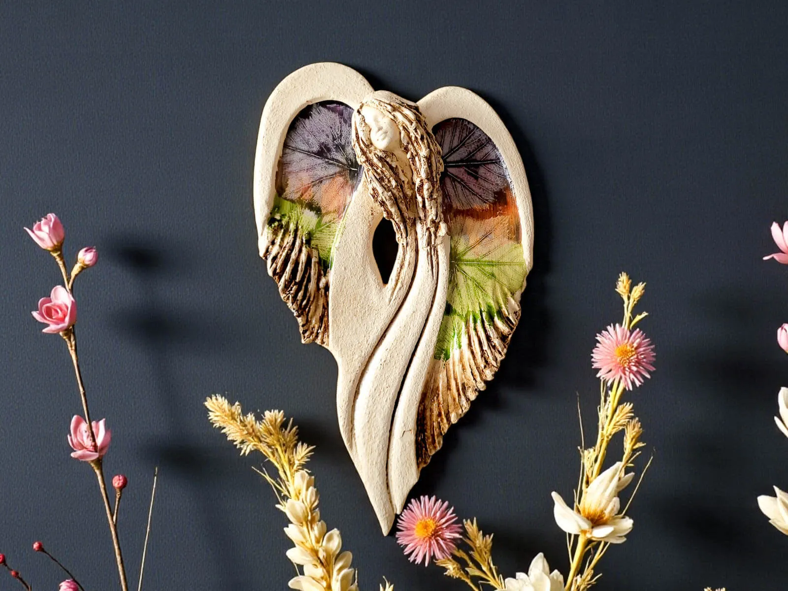 Unikalny anioł Cynthia z kolekcji Art Leaf z wzorami prawdziwych liści. Jedyna sztuka z tym wzorem. Wyjątkowa uroda, ujmująca delikatność, wielka wrażliwość, kwintesencja kobiecości, pełna miłości, porywająca, a jednocześnie zapewniająca spokój. Zobacz jak pięknie chroni miłość, jak dba i troszczy się o Ciebie i Twoich bliskich, opiekuje, obdarza wiarą dającą siłę, rozlewa radość do każdego zakątka mieszkania, przepełnia je dobrocią, sercem pełnym nadziei, sprawia, że miłość dwojga ludzi jest spokojną przystanią.