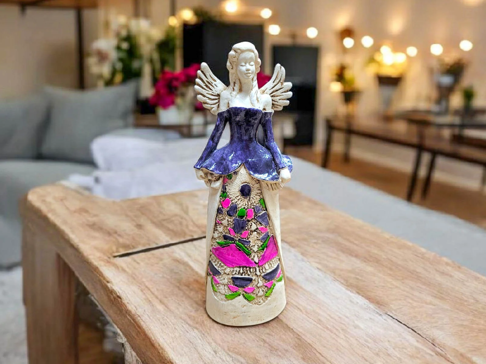 Dlaczego pokochasz Anioła Anna? Wnosi ciepło i elegancję do wnętrza – jej łagodna kolorystyka i ręczne wykończenie sprawiają, że staje się pięknym akcentem dekoracyjnym, który ociepla atmosferę pomieszczenia.