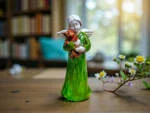 Aniołek ubrany jest w zieloną sukienkę, symbolizującą spokój, harmonię i opiekę. To wyjątkowa ozdoba, która wnosi ciepło i pozytywną energię do każdego wnętrza. Idealny prezent dla bliskiej osoby lub piękny dodatek do kolekcji aniołków.