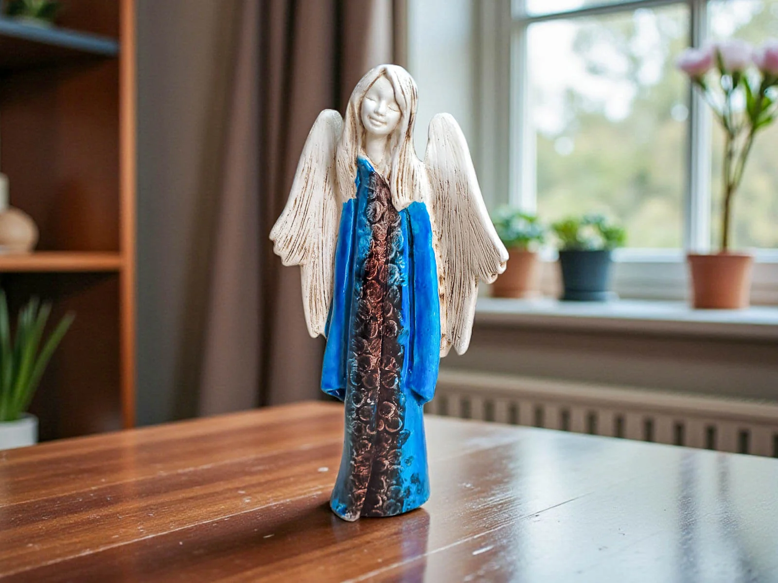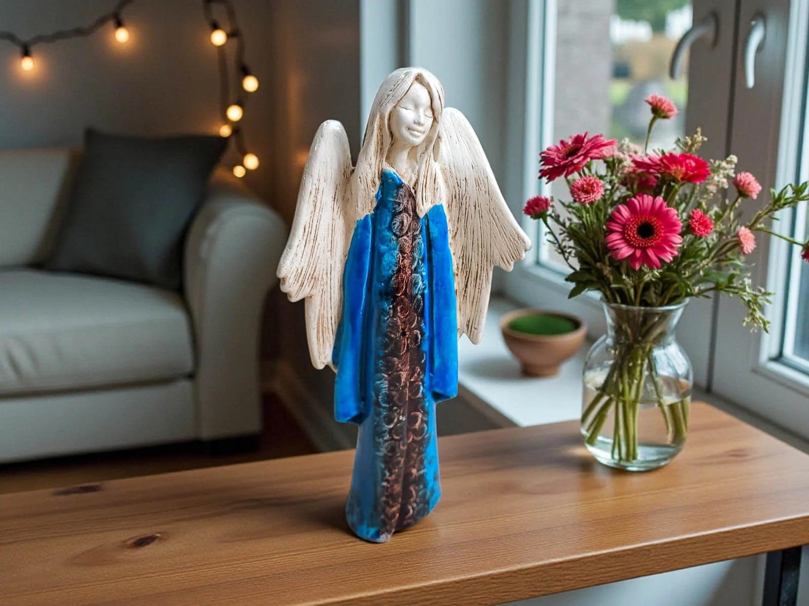 Jeśli anioł ma zostać wręczony jako prezent możemy go również elegancko zapakować w przeźroczysty celofan wiązany ekologicznym sznurkiem. Dzięki temu anioł będzie wyglądał jeszcze bardziej dostojnie i będzie gotowy do wręczenia. Dla wygody możesz również od razu zakupić papierową białą torbę prezentową.