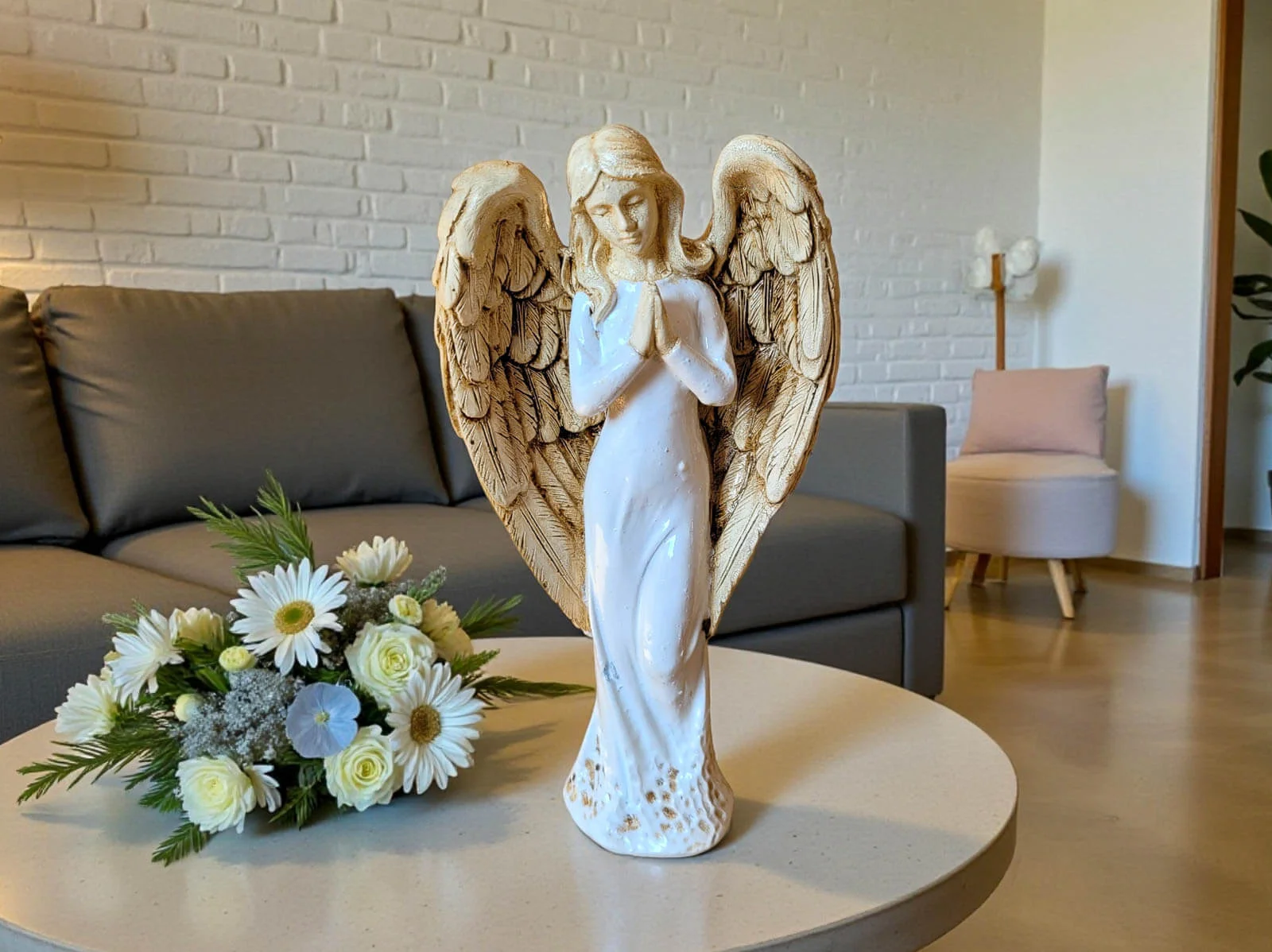 Ręcznie wykonana figurka Anioła Stróża to wyjątkowy symbol opieki, spokoju i duchowej bliskości. Utrzymana w szlachetnej bieli, o wysokości 20 cm, emanuje delikatnością i harmonią, wprowadzając do wnętrza atmosferę ciszy, bezpieczeństwa i nadziei. To nie jest masowa dekoracja – każdy Anioł powstaje w małej polskiej manufakturze, gdzie rzemiosło, uważność i serce wkładane w każdy detal sprawiają, że każda sztuka jest niepowtarzalna.
