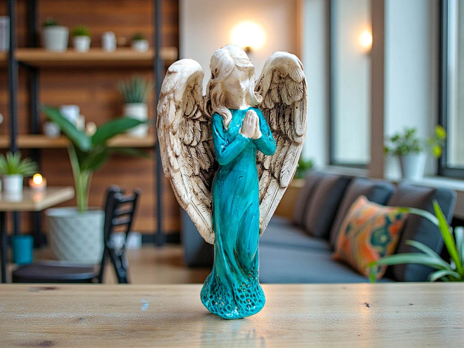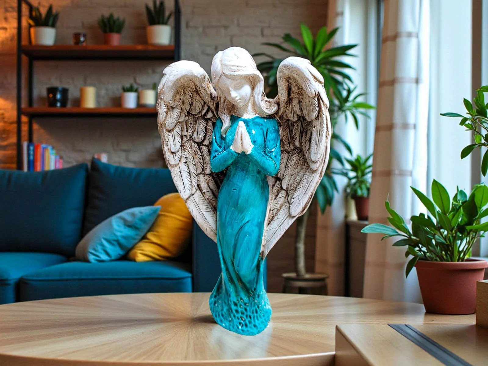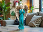 Ręcznie wykonana figurka Anioła Stróża w turkusowej sukni to wyjątkowy symbol opieki, spokoju i duchowej bliskości. Utrzymana w szlachetnej bieli, o wysokości 20 cm, emanuje delikatnością i harmonią, wprowadzając do wnętrza atmosferę ciszy, bezpieczeństwa i nadziei. To nie jest masowa dekoracja – każdy Anioł powstaje w małej polskiej manufakturze, gdzie rzemiosło, uważność i serce wkładane w każdy detal sprawiają, że każda sztuka jest niepowtarzalna.
