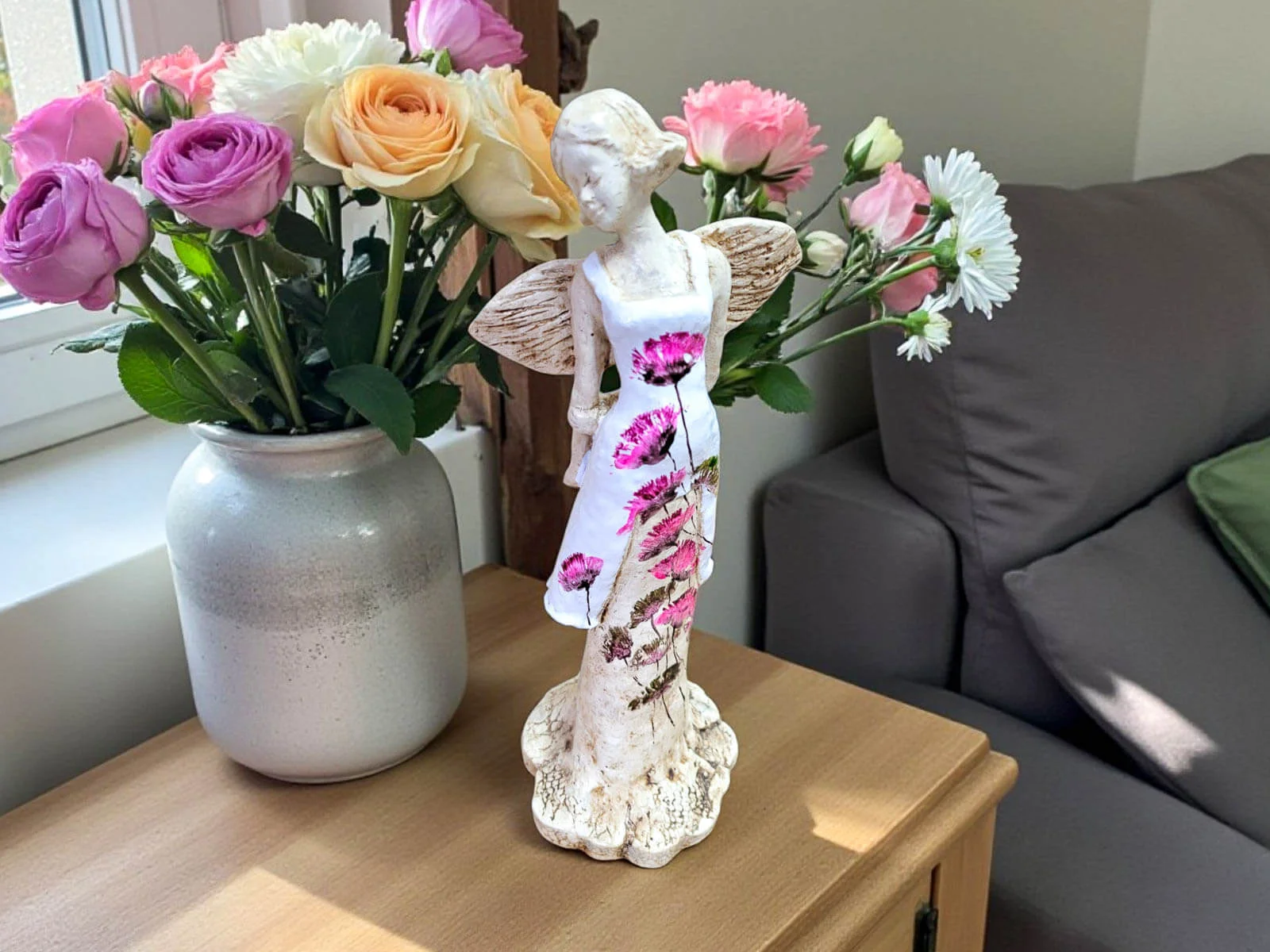 „Niech ta figurka przypomina Ci, że masz przy sobie anioła – zawsze, gdy się śmiejesz, gdy się boisz i gdy się modlisz.”