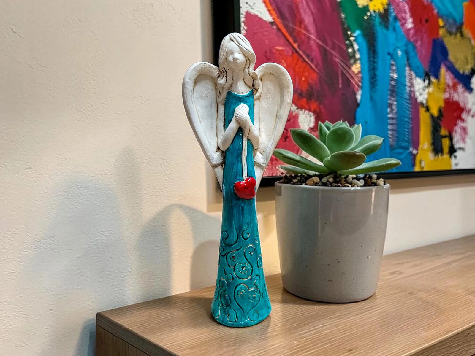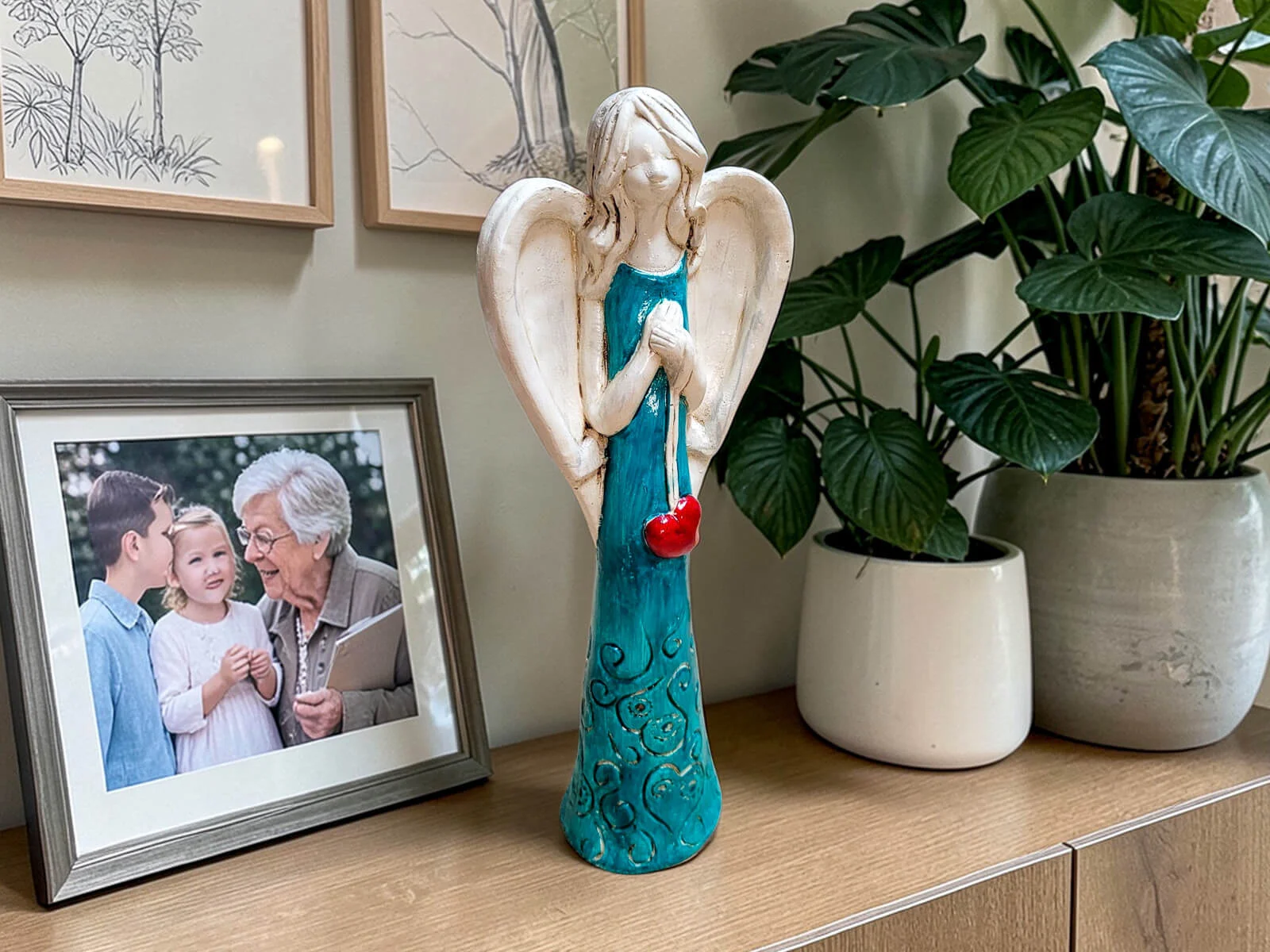 Jeśli anioł ma zostać wręczony jako prezent możemy go również elegancko zapakować w przeźroczysty celofan wiązany ekologicznym sznurkiem. Dzięki temu anioł będzie wyglądał jeszcze bardziej dostojnie i będzie gotowy do wręczenia. Dla wygody możesz również od razu zakupić papierową białą torbę prezentową.