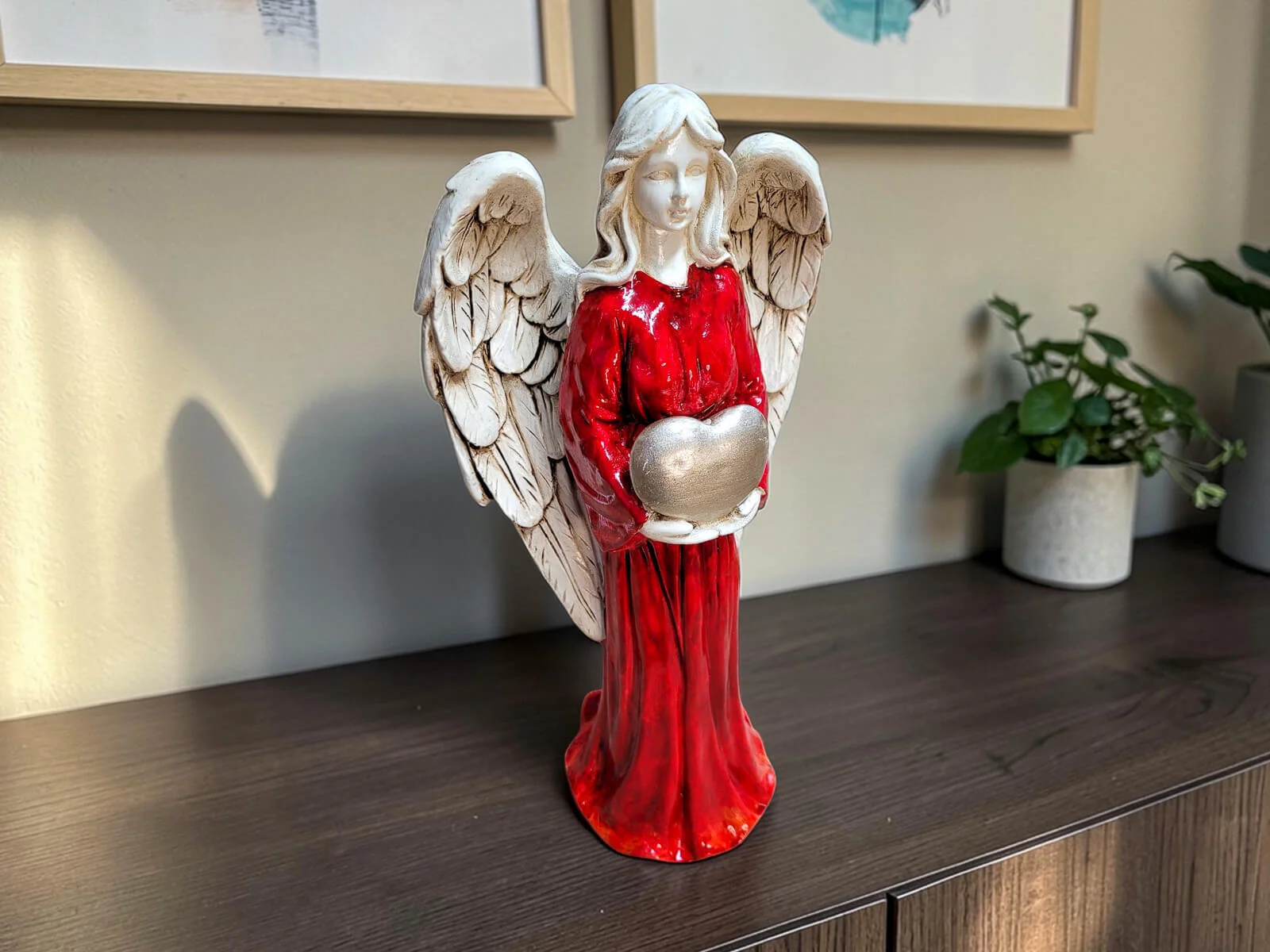 Figurka anioła Amirael z sercem - czerwony - 43 x 18 cm figurka dekoracyjna +