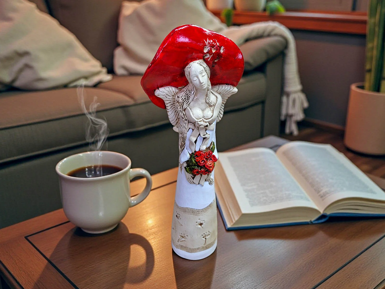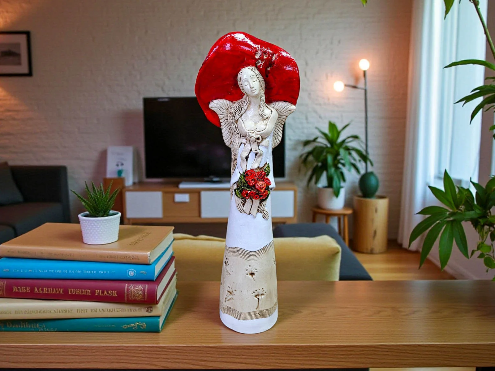 To dekoracja, która nie ginie w tle. Doskonale sprawdzi się jako centralny element wystroju salonu, sypialni lub eleganckiego gabinetu, nadając wnętrzu wyjątkowy klimat i artystyczny charakter. Anioł Mabel podkreśla indywidualność przestrzeni i gust właściciela.