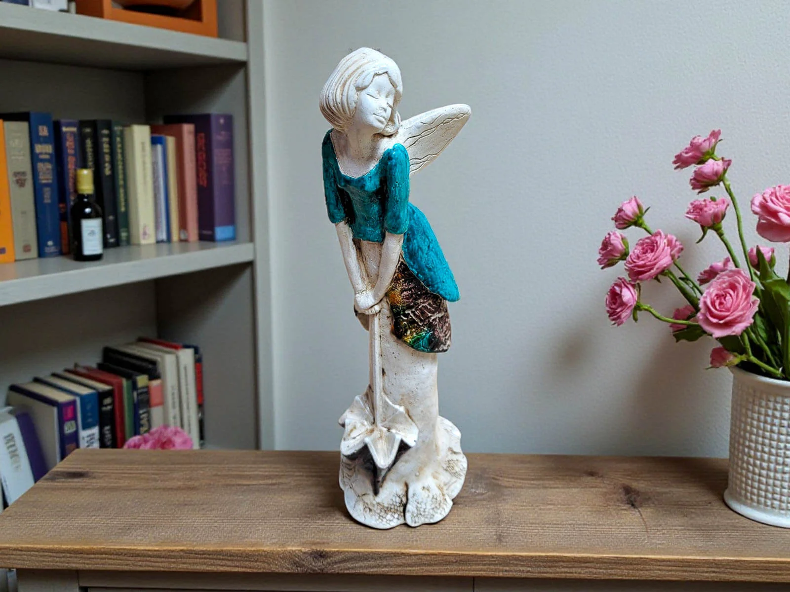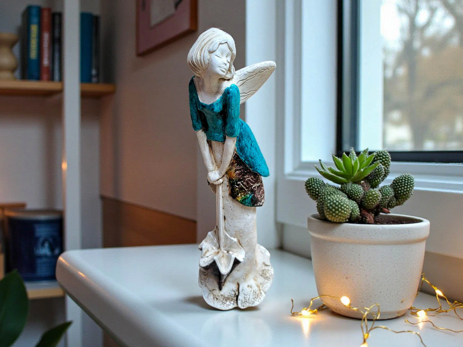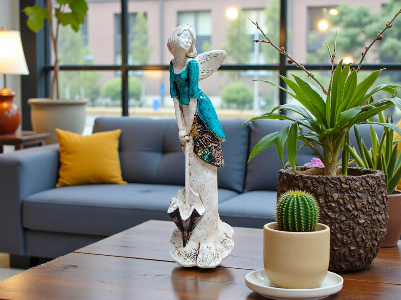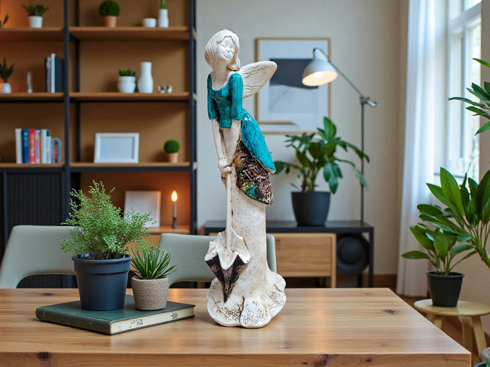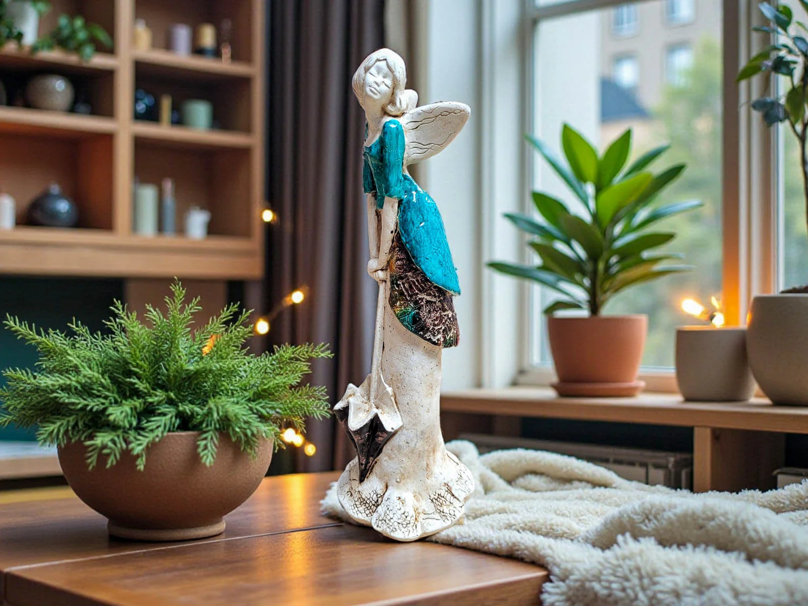Anioł Annabel to mała dawka słońca zamknięta w wyjątkowej, ręcznie wykonanej figurce. Jej pogodna postawa, delikatny uśmiech i charakterystyczna parasolka przypominają o tym, że nawet w pochmurny dzień można znaleźć powód do radości. To dekoracja, która wnosi do wnętrza lekkość, optymizm i ciepłą atmosferę.