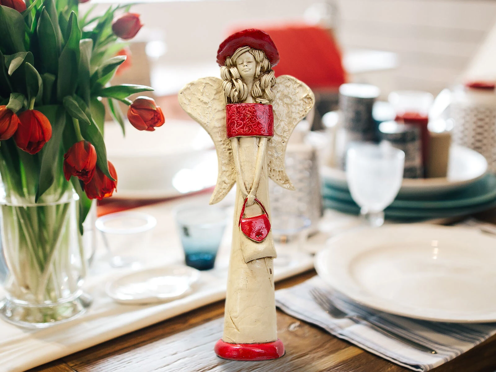 Figurka anioła Loretta - czerwona - 15 cm figurka dekoracyjna