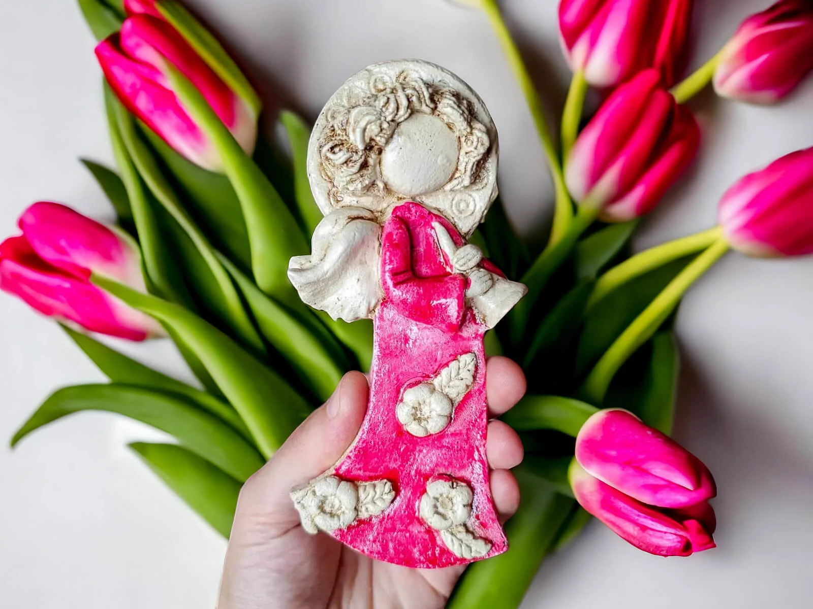Figurka anioła z fletem - różowa - 16 x 7 cm figurka dekoracyjna