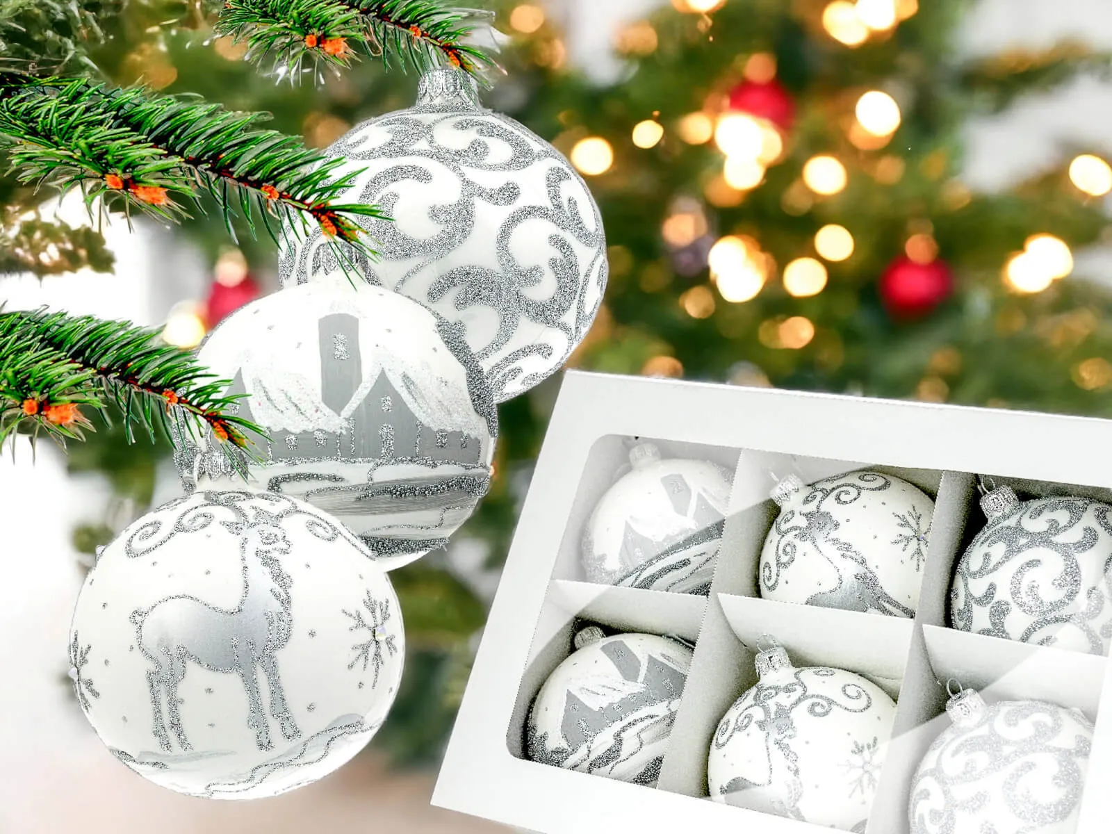 Bardzo ładny perłowy kolor sprawia,że wyglądają wyjątkowo na choince.Jestem zadowolona z zakupu,jak i z obsługi sklepu.Polecam zakupy.