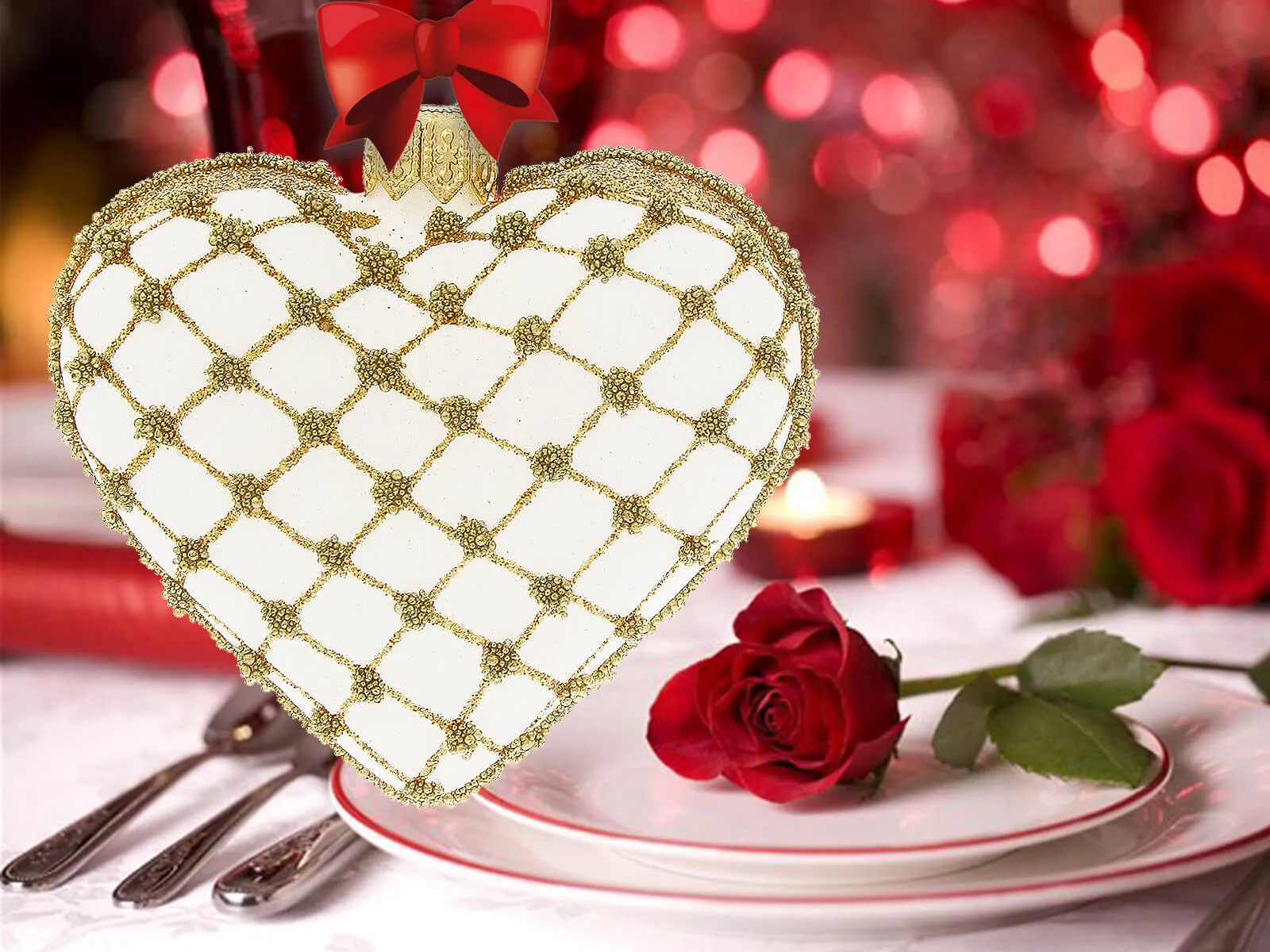 Niesamowite bombki, eleganckie złote motywy z kryształkami na czerwonym porcelanowym tle.