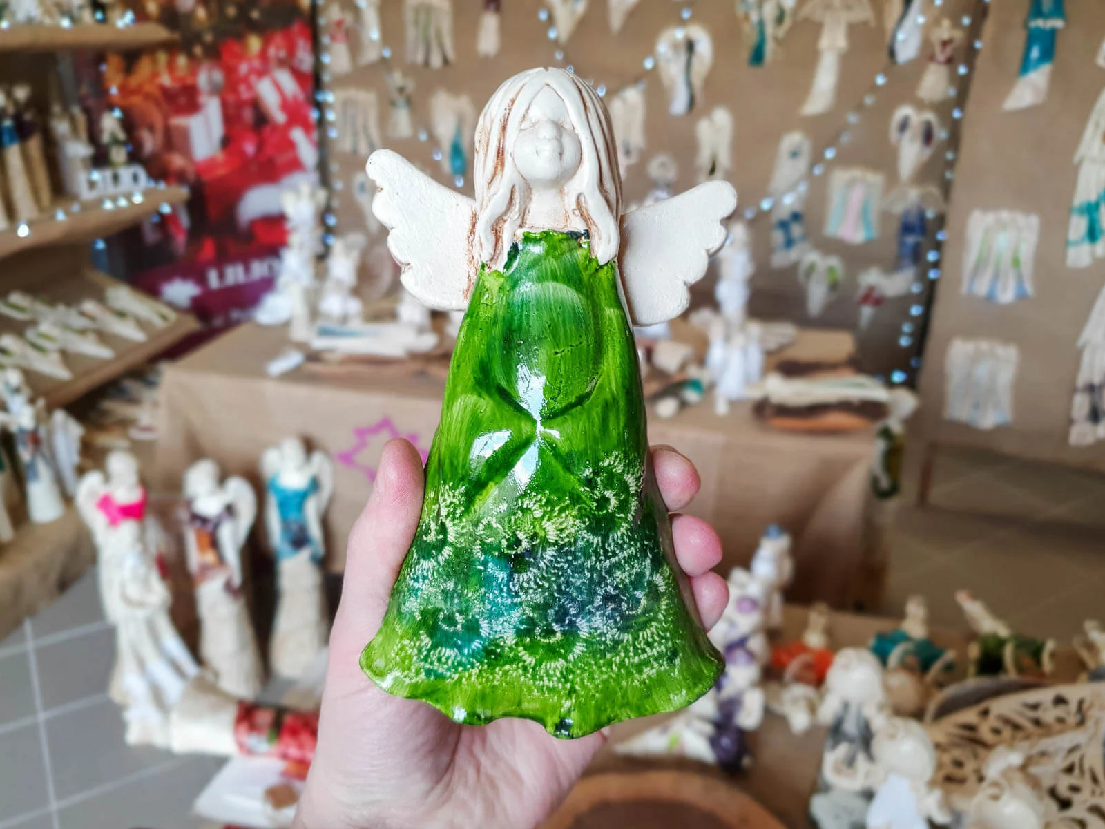 Figurka anioła Monica Art - zielona - 18 x 10 cm figurka dekoracyjna
