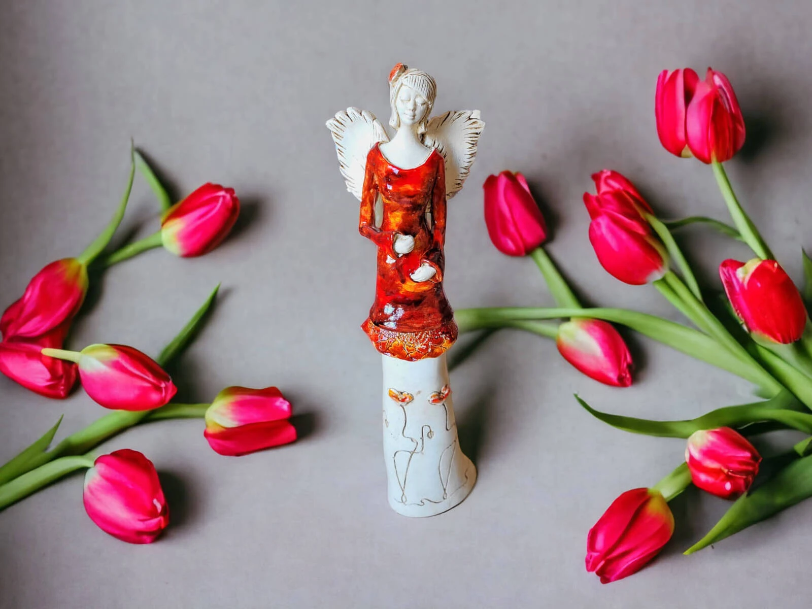 Figurka anioła Loretta - pomarańcz - 15 cm figurka dekoracyjna