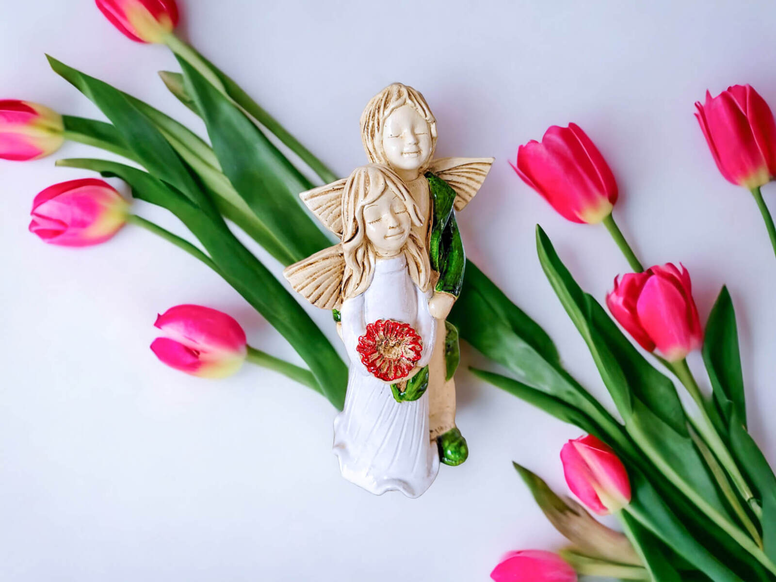 Anioł delikatny, przepełniony spokojem.