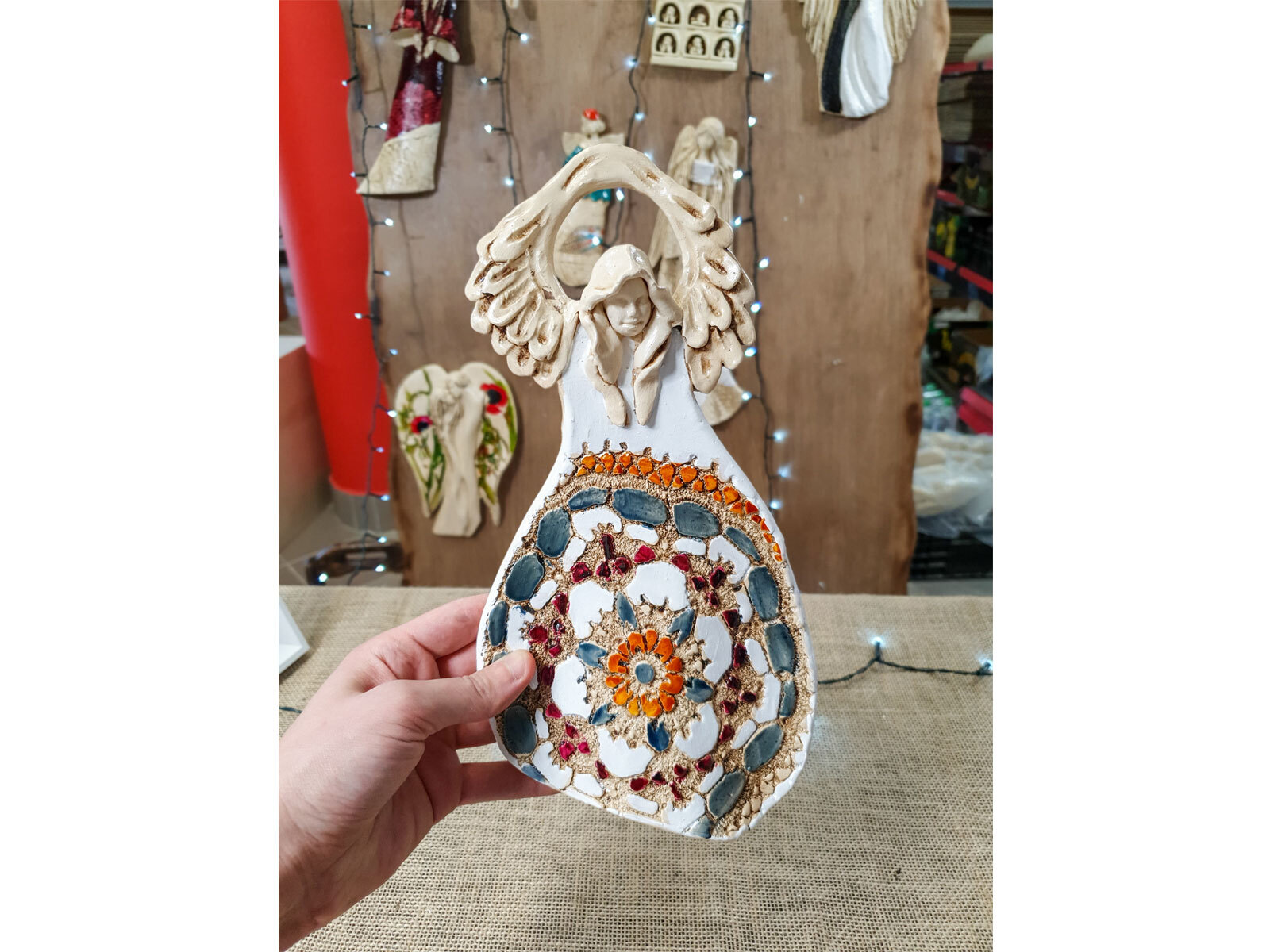 Anioł przepięknie wykonany. Zdjęcie produktu na stronie idealnie pokrywa się z tym co otrzymujemy fizycznie w paczce. Obdarowana osoba jest zachwycona Aniołem. Produkt zapakowany jest bardzo dobrze i bezpiecznie . Polecam gorąco 😊