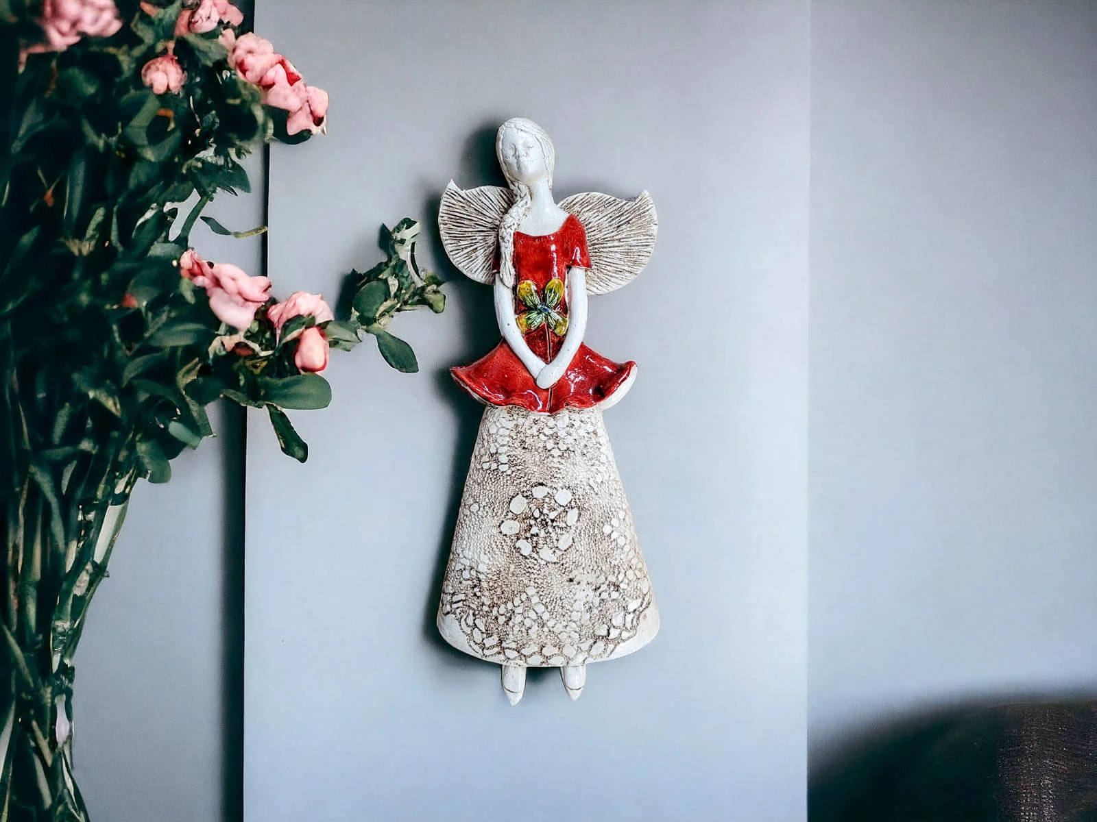 Figurka anioła Abigail - czerwony -  30 x 14 cm figurka dekoracyjna