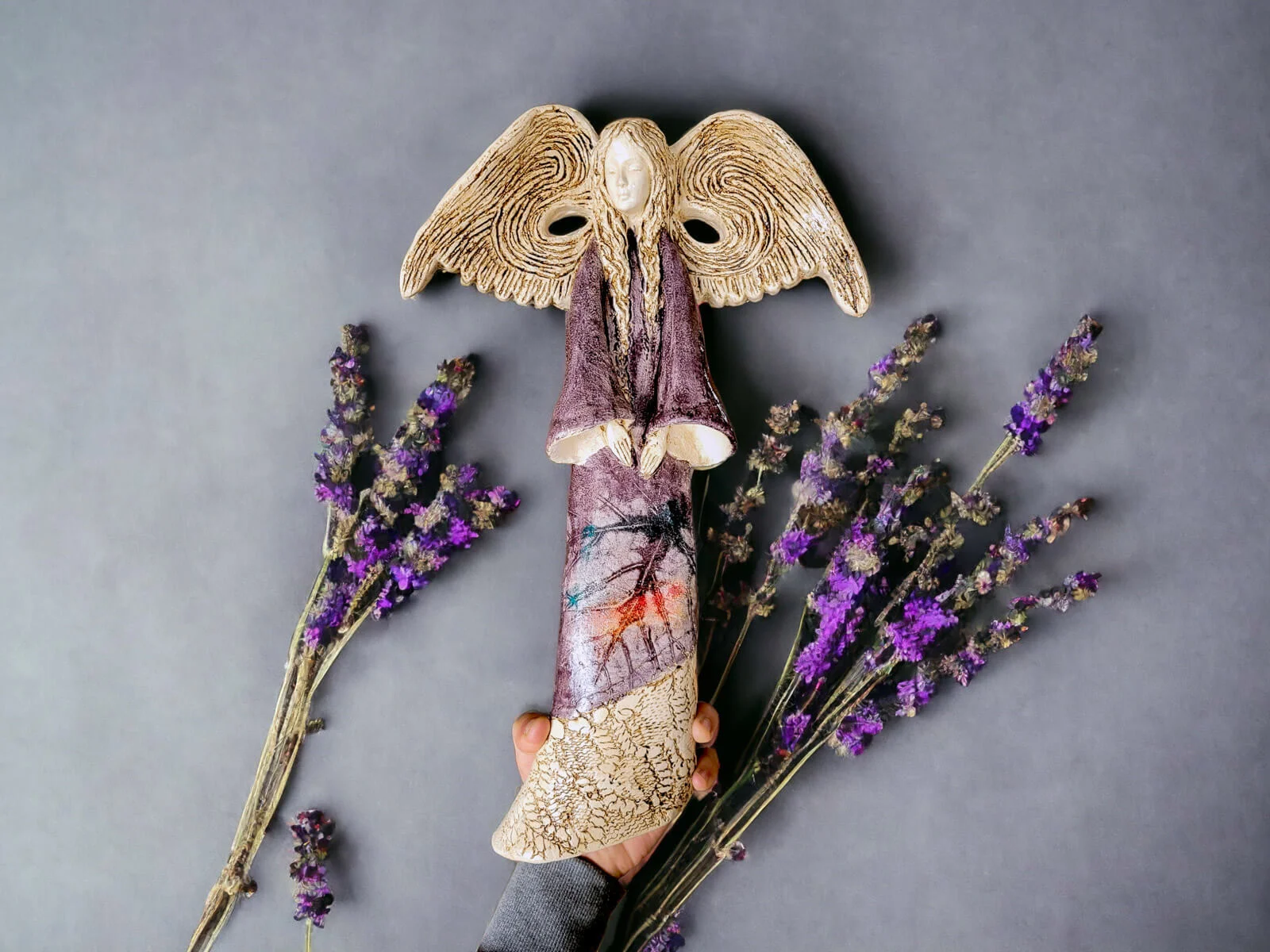 Figurka anioła Clara Art Leaf - fiolet - 40 x 28 cm figurka dekoracyjna