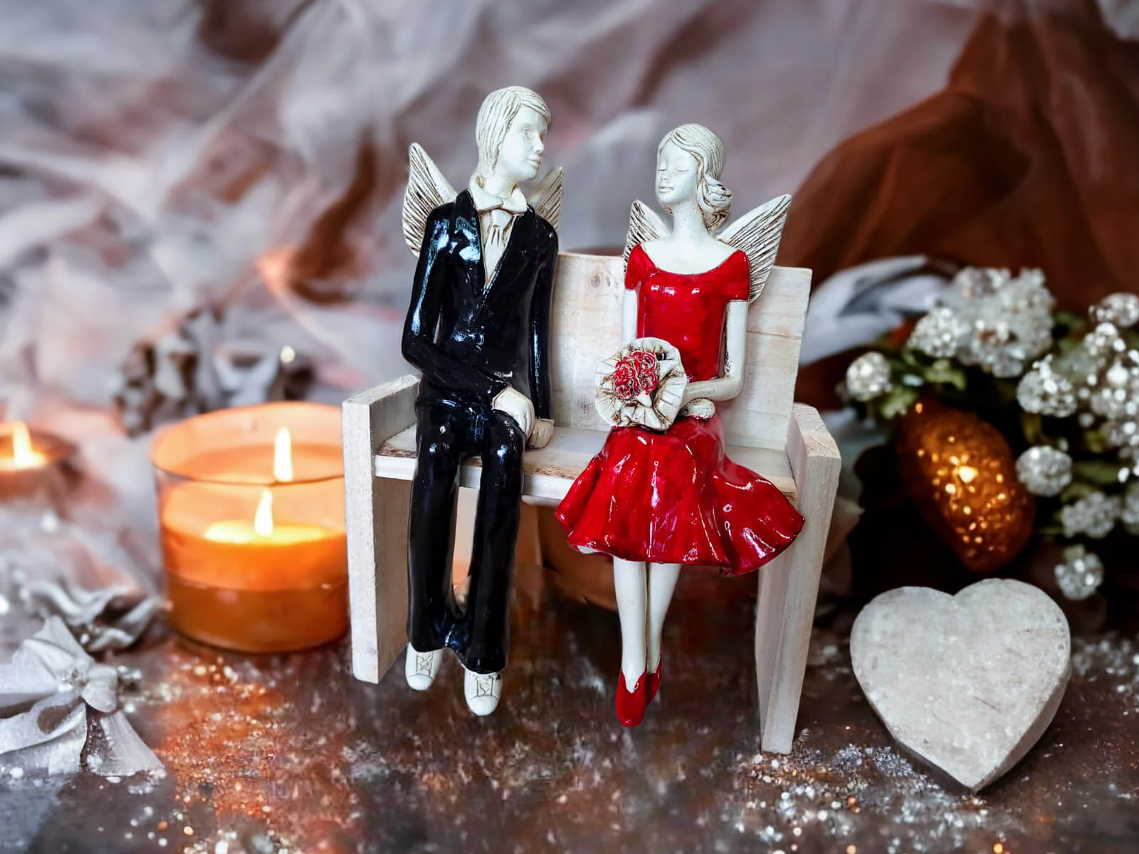 Anioły Para - czerwone - 20 x 9 cm figurka dekoracyjna