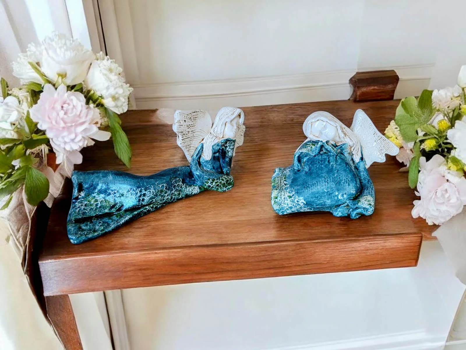 Dwa Turkusowe Anioły - komplet  -  figurka dekoracyjna