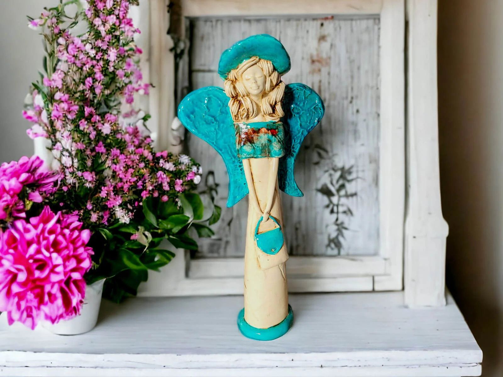 Figurka anioła Sunday Rose - turkus - 32 x 15 cm figurka dekoracyjna
