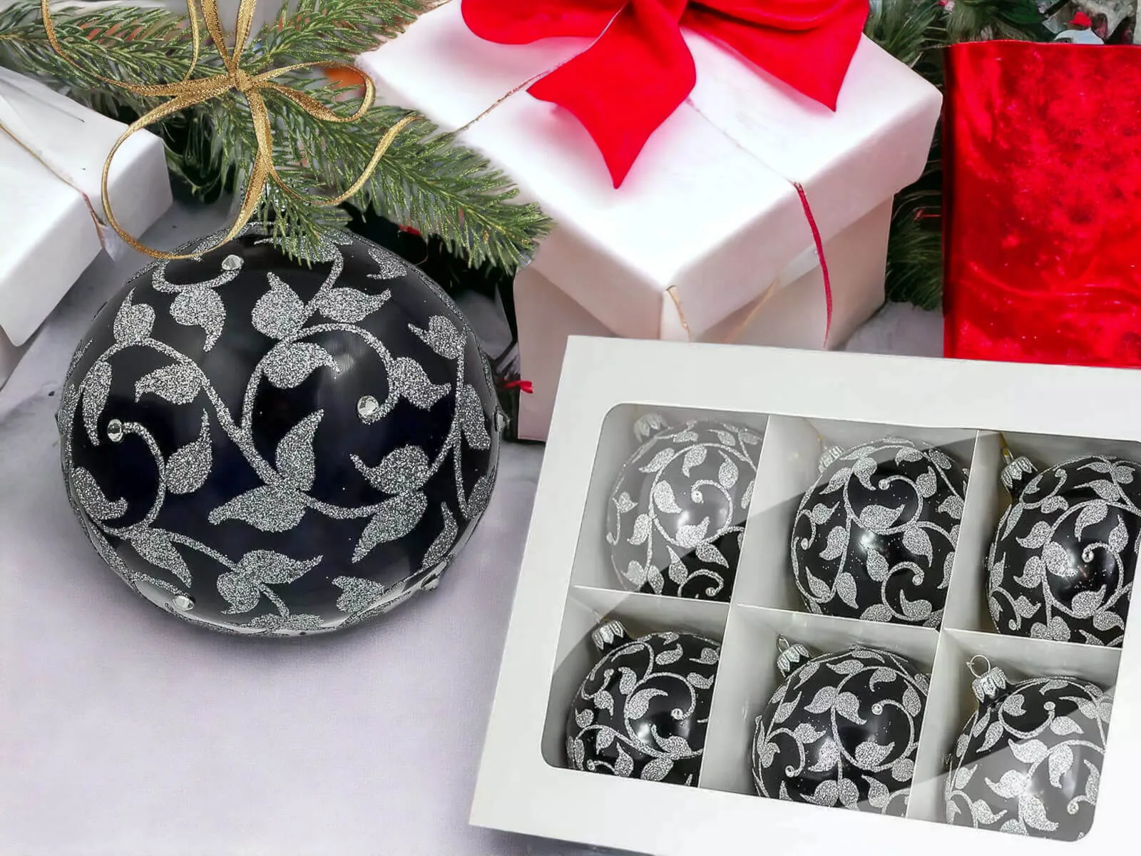 Bałam się czarnych bombek ale jak zobaczyłam komplet z czarnej porcelany z dodatkiem srebrno-hologramowego brokatu i gęstego wzoru listków-to jestem mega zadowolona.Cudnie błyszczą się.Bardzo polecam.